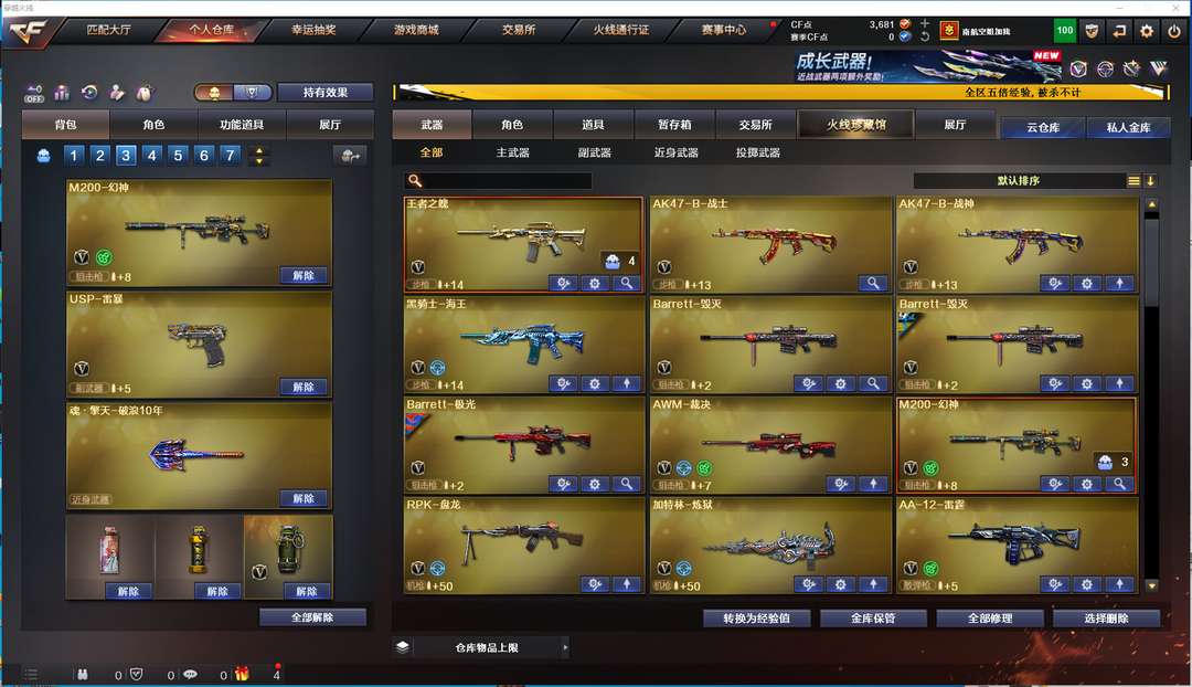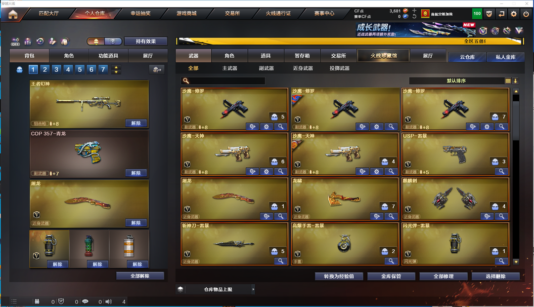 幻神+王者幻神+USP雷暴80V可排位专家1白虎毁灭音效卡荣耀之怒爆破全装