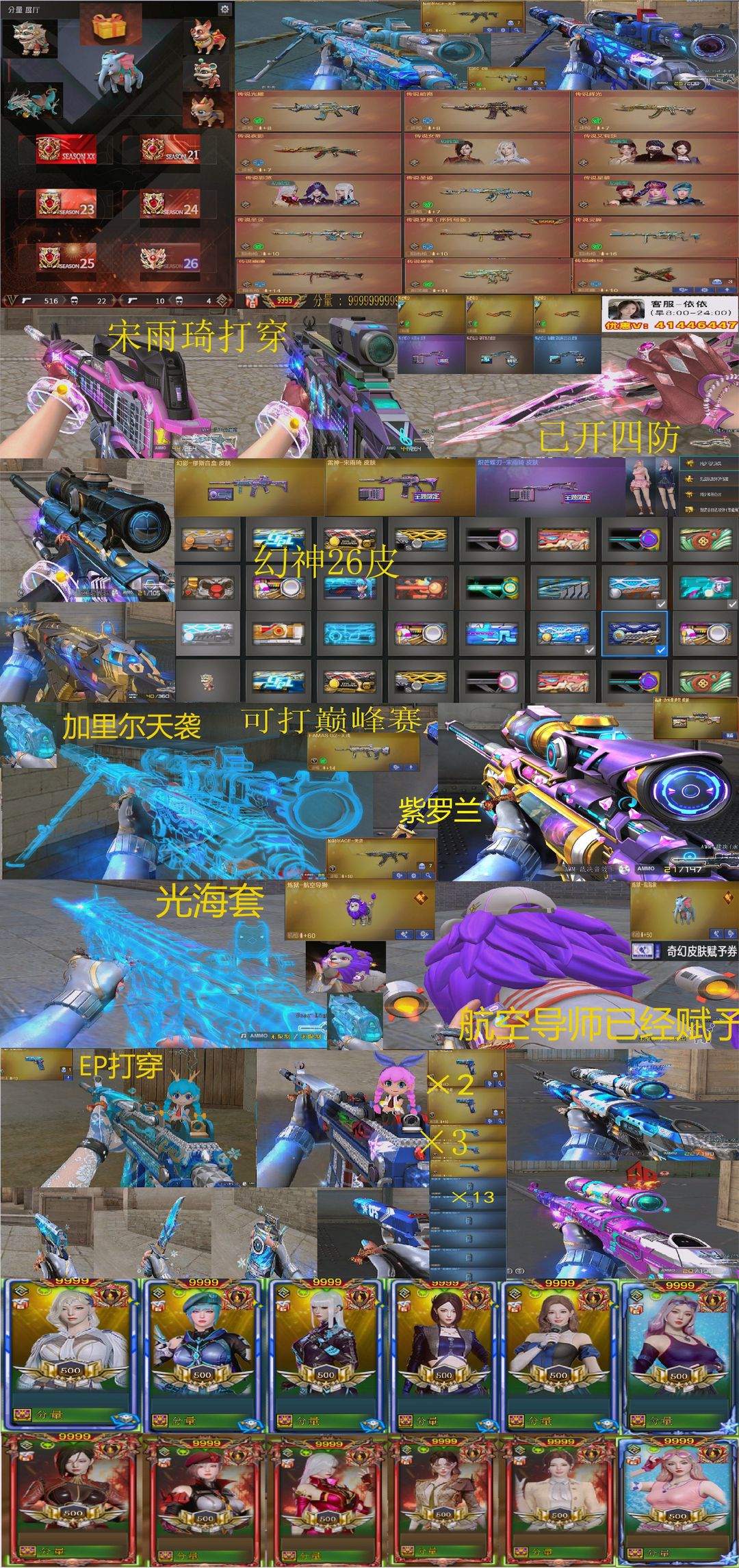 满氪金光海夜岚套❤紫罗兰梅雀雨琦导狮天袭❤Ep套KZ全皮7幻神❤AG星神全音效卡❤满传说❤️泡泡象