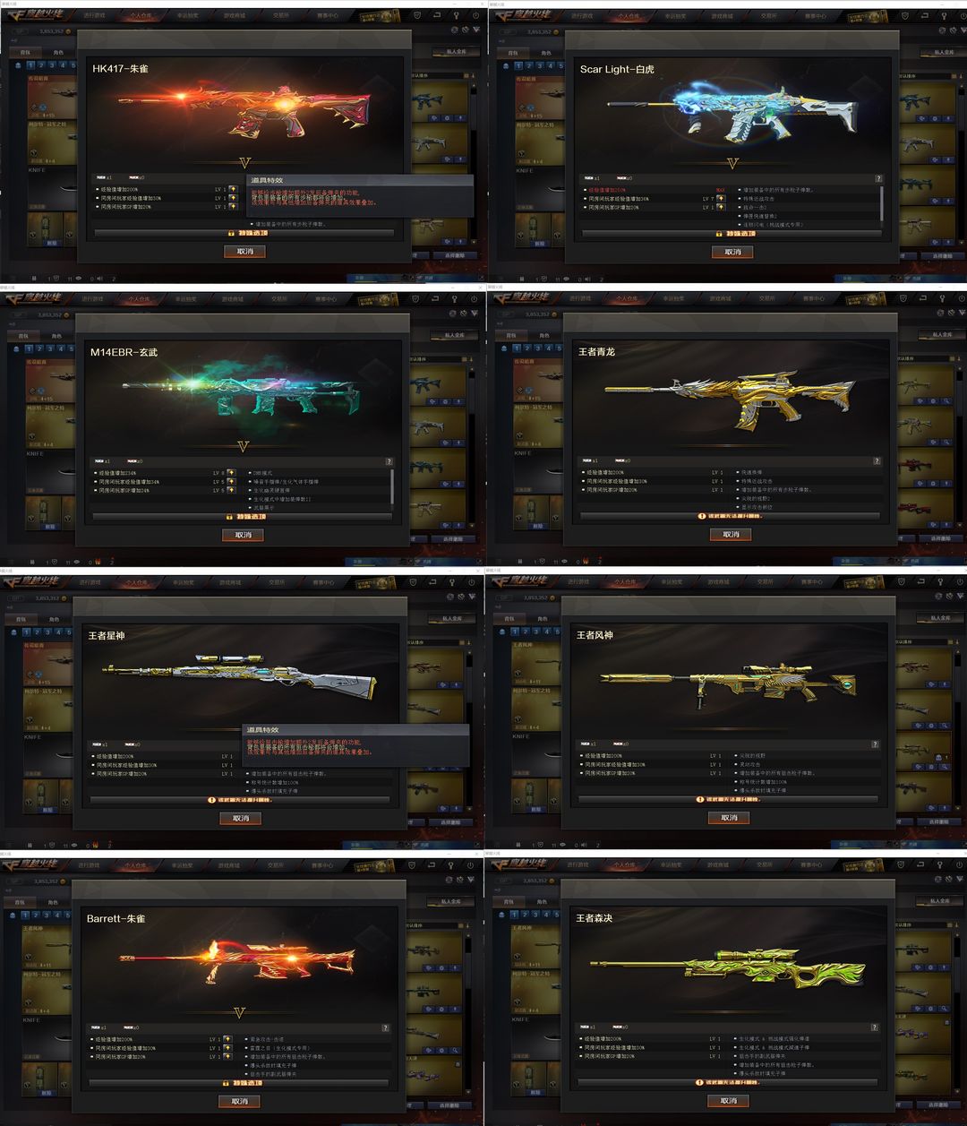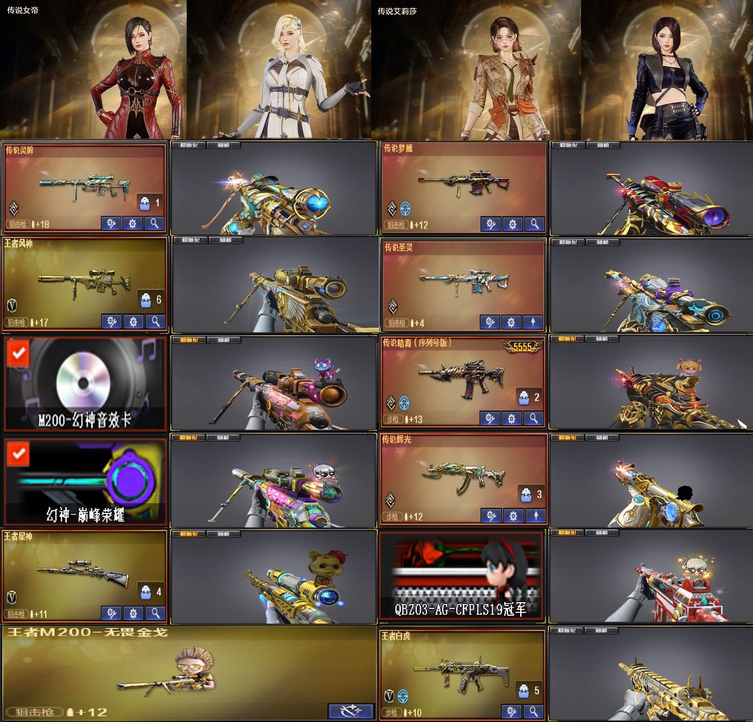 六传说灵眸女帝辉光圣灵梦魇暗裔豹子序列❤巅峰幻神音效卡❤王者风神星神玄武白虎❤生化6盘6烈蝴蝶枪小钢