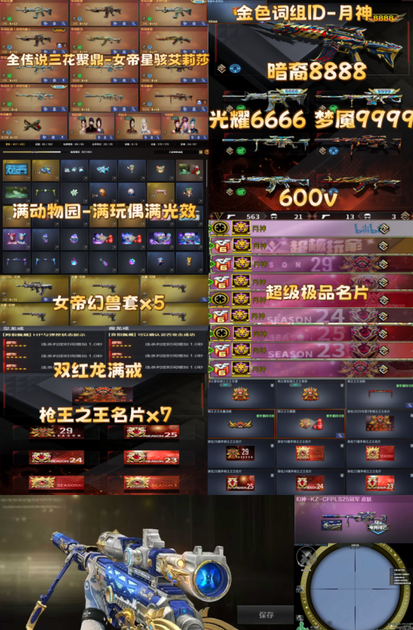 KZ幻神光海20皮音EP全套❤图鉴92%满年套❤女帝幻兽套x5满传说三豹序列689❤枪王之王名片x7