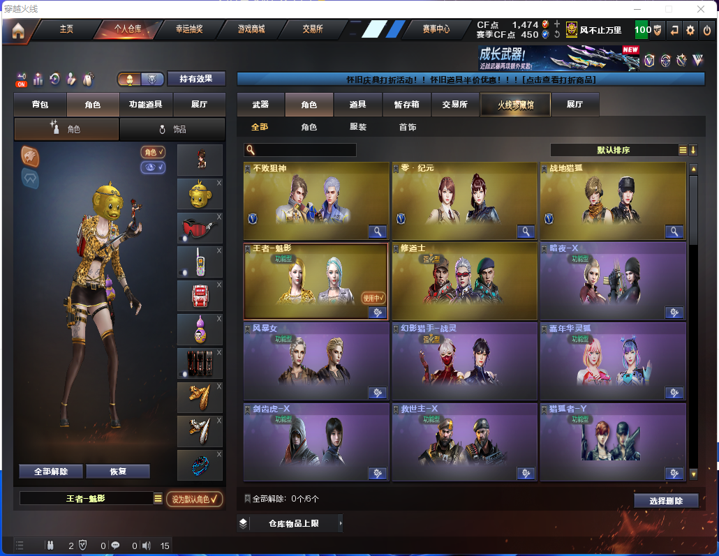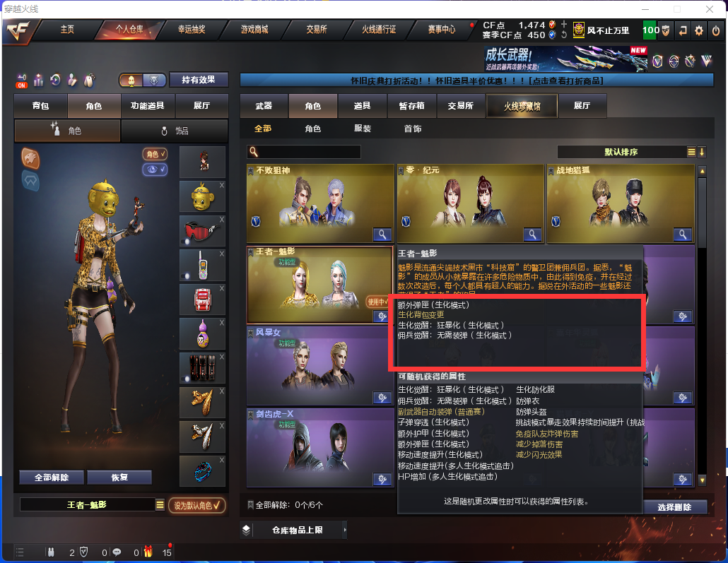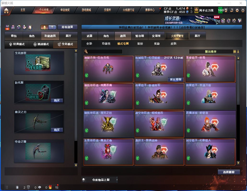 时空猎手✨16个生化皮肤✨斯泰尔蝴蝶小毒蜂✨四防生化背包✨炼狱带皮幻神可排位✨满榴弹不退包无炽芒蝶刃