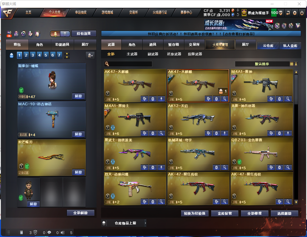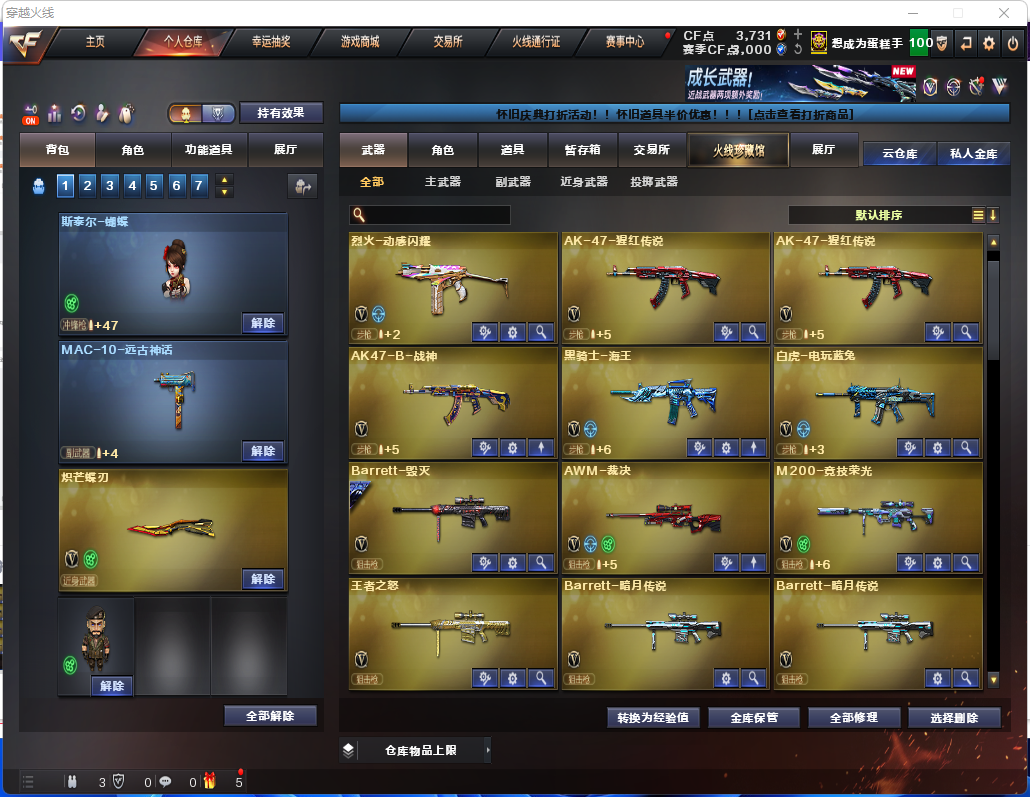 游戏区服:穿越火线-电信区-江西一区