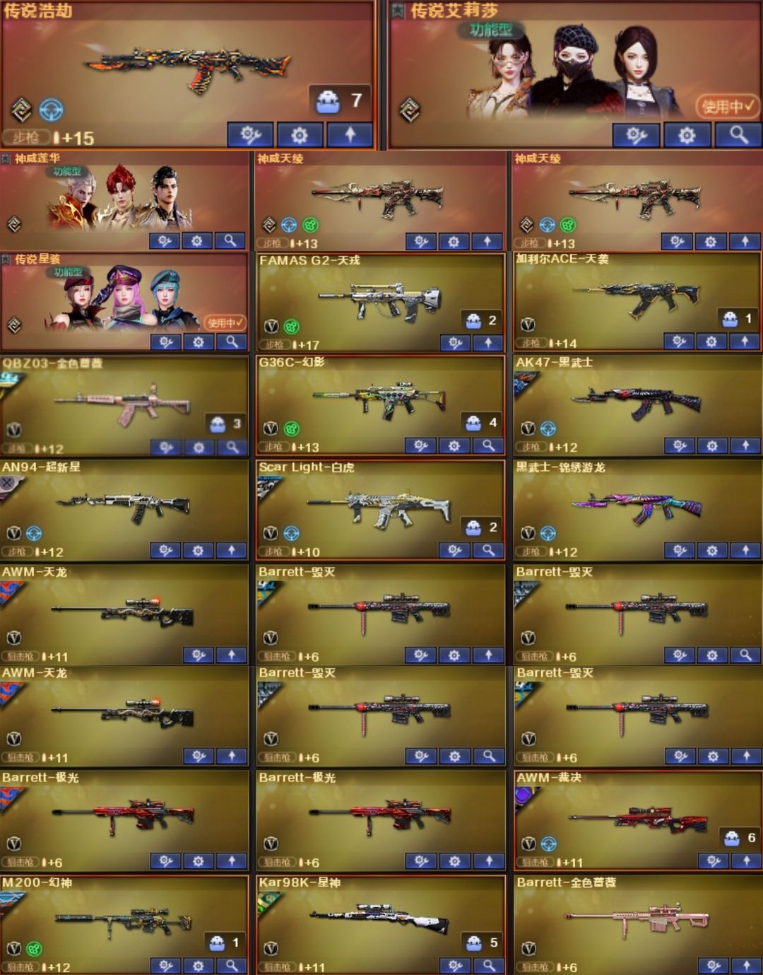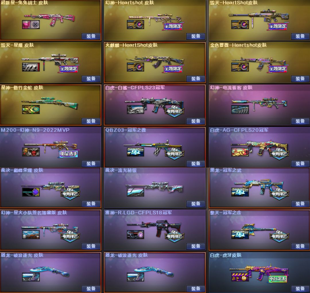 莲华天绫浩劫天袭天戎星骇幻影⭐幻神卡YZK星火7皮⭐裁决卡2皮⭐白虎卡常旭虎牙白鲨AG⭐QBZ卡冠薇