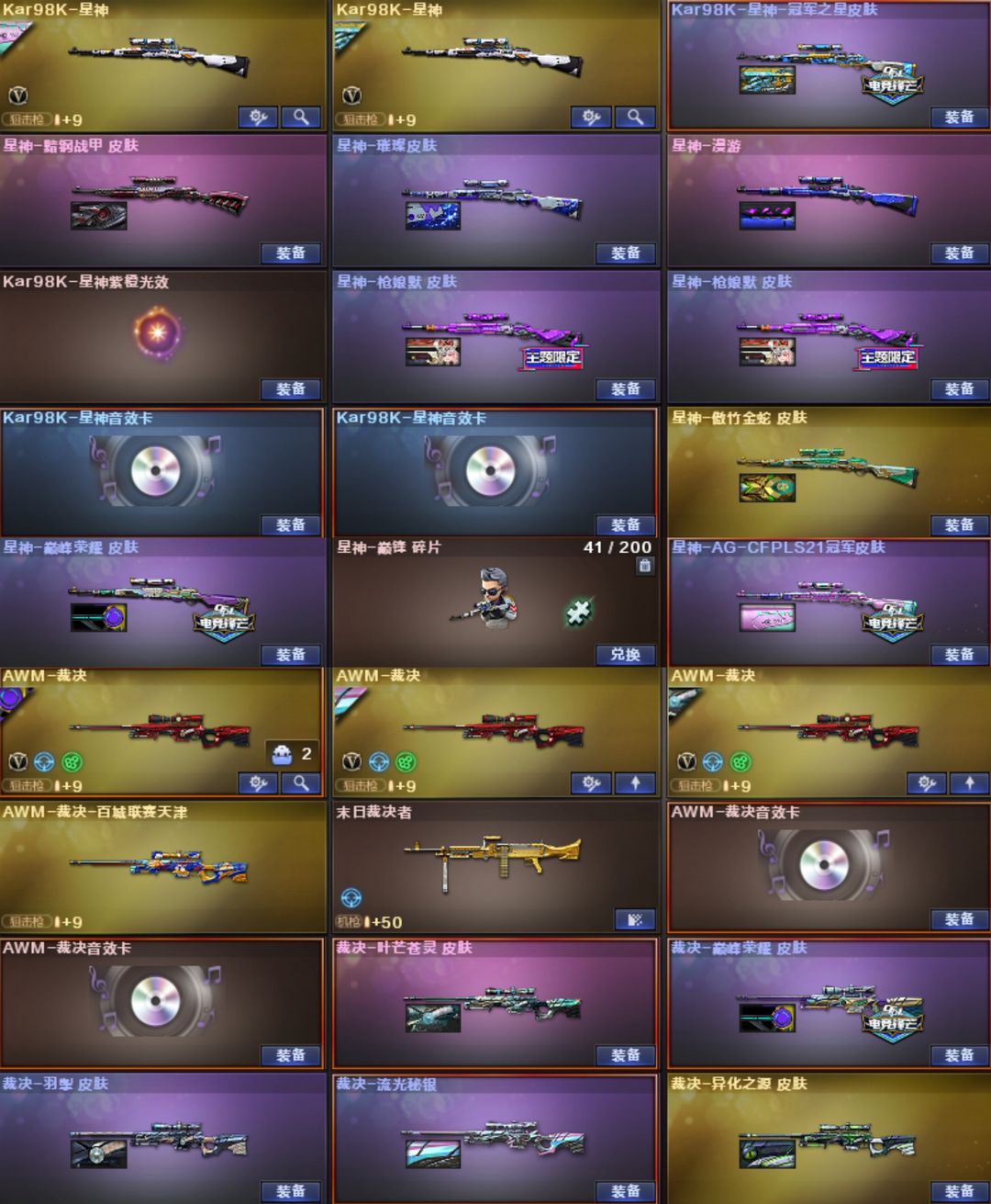 KZ星骇幽瞳天袭幻影天戎幻神卡电竞星火EP17皮⭐QBZ宠儿12皮白虎白鲨9皮⭐星神卡十皮裁决卡5皮