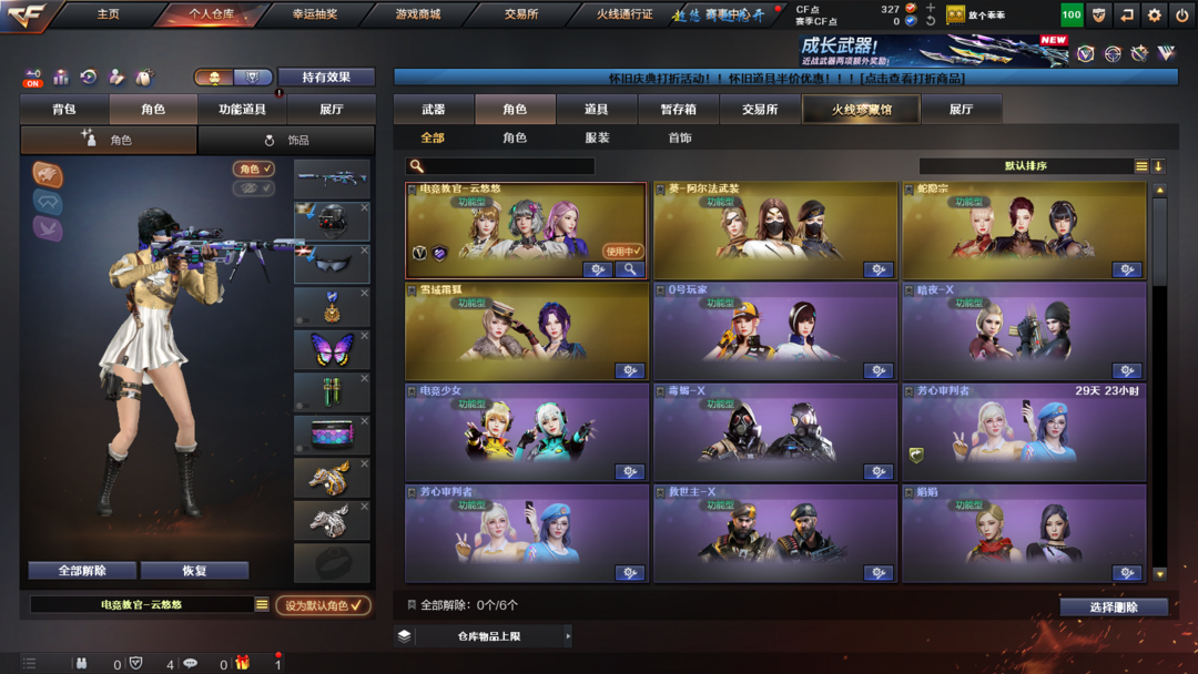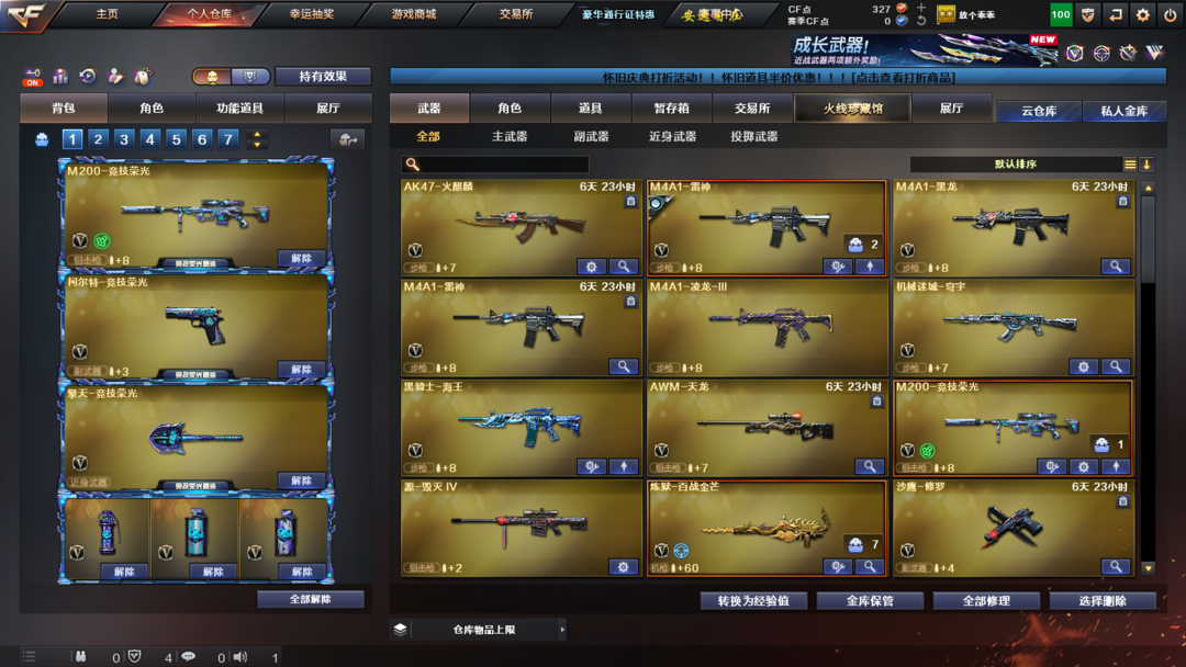 装备描述:四川二区-38V-1王者-0炫金 【热门武器】:M200-竞技荣光,羊驼玩偶,裁决-雪莉杨 【角色】:电竞教官-云悠悠 雪域霜狐 全套服装 【人偶武器】:裁决-雪莉杨,迷你牛牛,生化手雷-机甲核心 【英雄级武器】:M200-竞技荣光,柯尔特-竞技荣光,擎天-竞技荣光,高爆手雷-竞技荣光*9,烟雾弹-竞技荣光*8,闪光弹-竞技荣光*8,M4A1-雷神,M4A1-黑龙,黑骑士-海王,M4A1-凌龙-Ⅲ,麒麟刺-百战金芒