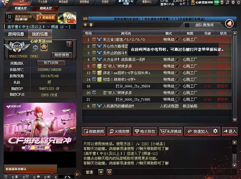 游戏区服:穿越火线-网通区-辽宁一区
