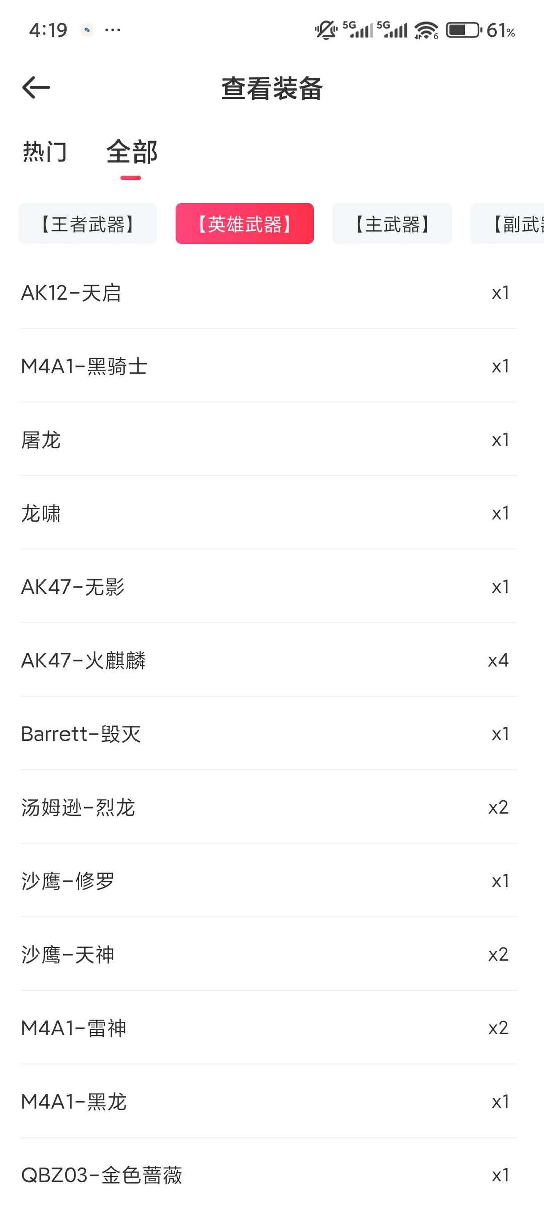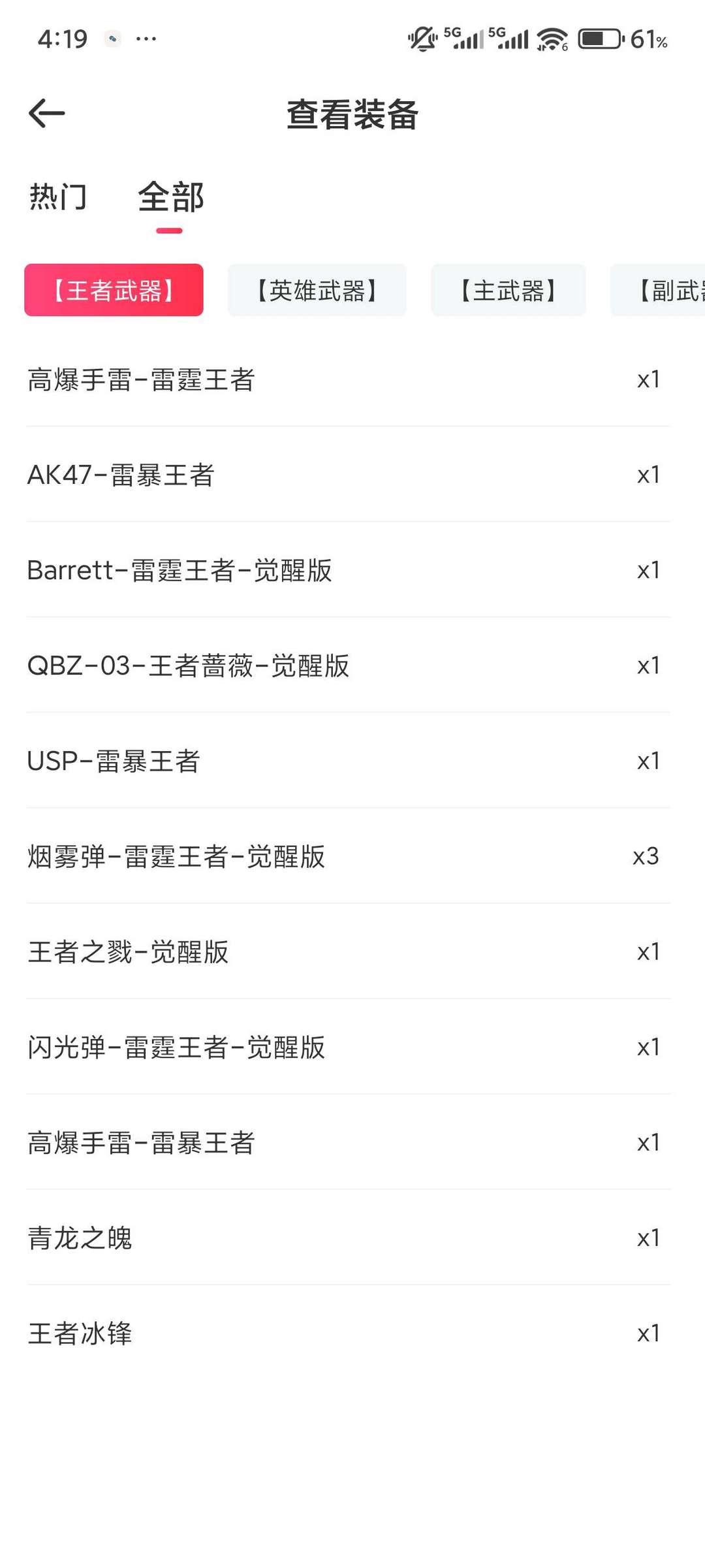 王者武器,雷神,屠龙,龙啸,毁灭,幻神,青龙,冥王,王者ak,王者蔷薇等