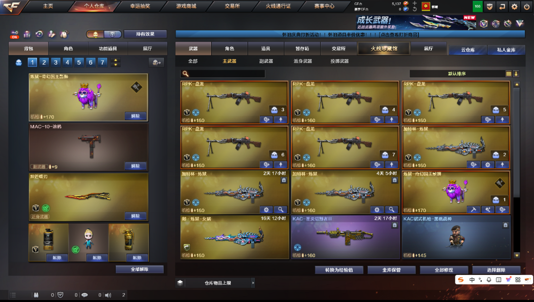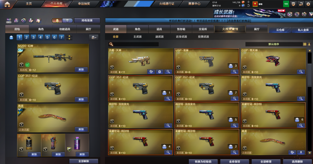 装备描述:顶级生化爆破号神威莲华➕狮子国王蝴蝶刀 多把幻神宠儿冠幻Ag三件套传说圣灵星神裁决白虎幻影满配手枪