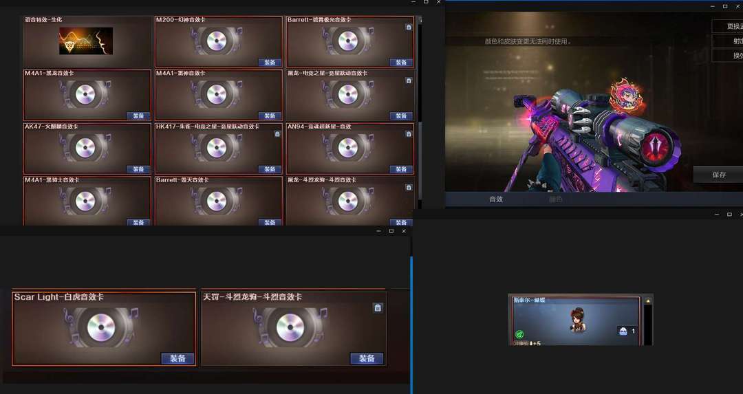 装备描述:【重要武器皮肤】幻神-AG-CFPLS17冠军/幻神-青鹤/Barrett-金色蔷薇-蛇姬 皮肤/毁灭-英雄计划 皮肤/毁灭-墨兰皮肤/毁灭-暗月/毁灭-神秘黑洞皮肤/毁灭-魔灵皮肤/极光-能量核心/天龙-CFSTAR/天龙-能量核心/火麒麟-CFSTAR/火麒麟-AG/火麒麟-华夏之心/火麒麟-平天大圣/火麒麟-心动糖果/火麒麟-百城/火麒麟-盘古/火麒麟-轻羽皮肤/AK47-B-常胜将军-刘备/AK47-B-常胜将军-孙权/雷神-冠军之魄/雷神-虎将/雷神-宇航兔皮肤/雷神-暗月/雷神-机甲刑天皮肤/雷神-烈虎皮肤/黑骑士耀金皮肤/黑骑士-电玩青兔皮肤/黑骑士-幻能朋克皮肤/黑龙-暗月/死神-机甲核心皮肤/死神-秘银/金色蔷薇-电竞之星 皮肤/白虎-大汉风骨/白虎-电玩粉兔皮肤/天启-暗月/战神-流金岁月皮肤/战神-紫绶金章皮肤/战神-粉色甜心皮肤/烈龙-卡】M200-幻神音效卡/Scar Light-白虎音效卡/M4A1-雷神音效卡/M4A1-黑骑士音效卡/M4A1-黑龙音效卡/AK火麒麟音效卡/Barrett-毁灭音效卡/Barrett-碧霄极光音效