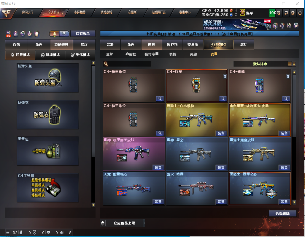 限制: 撤单率<10%才可租用此帐号装备描述:生化爆破全装 弹匣不退包道具都有 幻神音效卡雷神荣耀冠军之势冠军之怒,主生化号,充值不易,科技玩家请手下留情