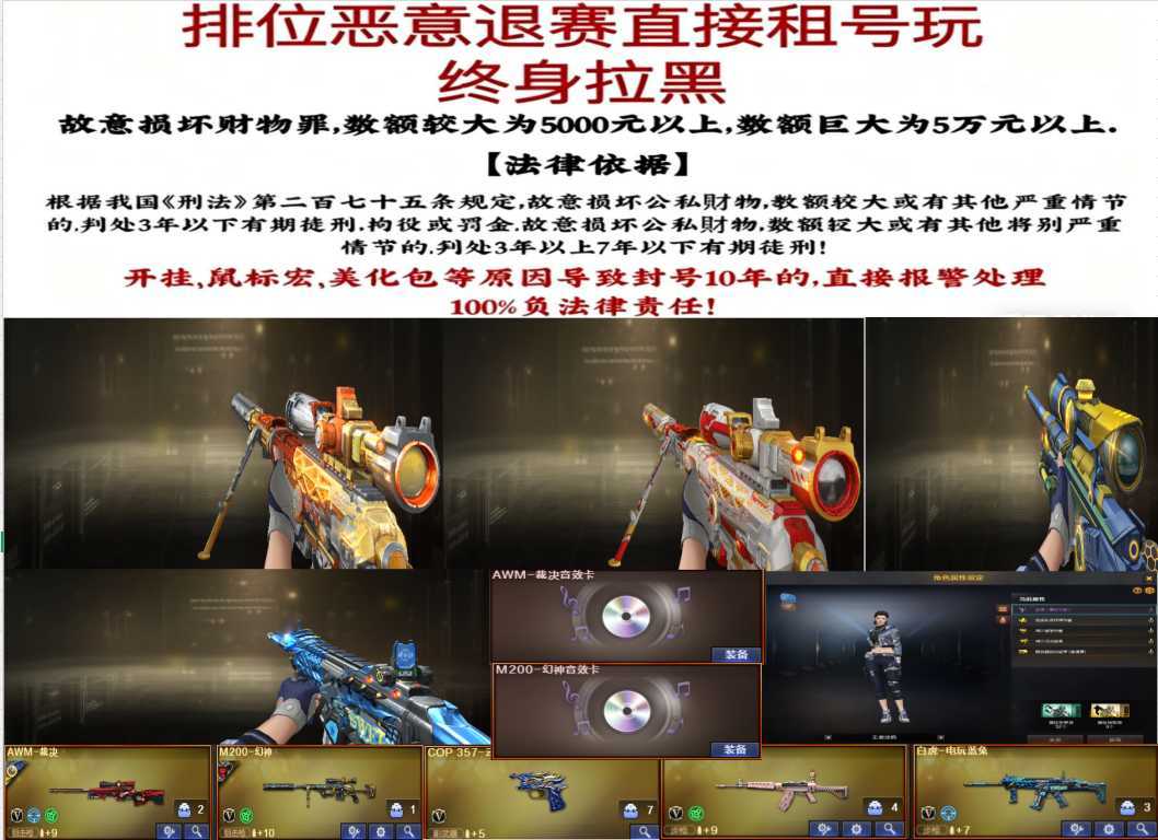 开挂报案❤️幻神新AG➕N9皮➕音效卡❤️裁决音效卡➕皮❤️白虎➕英雄手枪➕四防角色精品爆破号