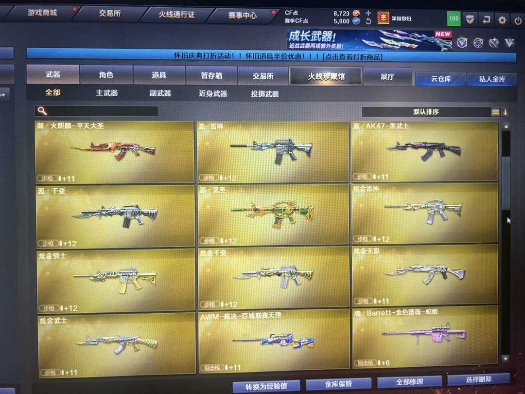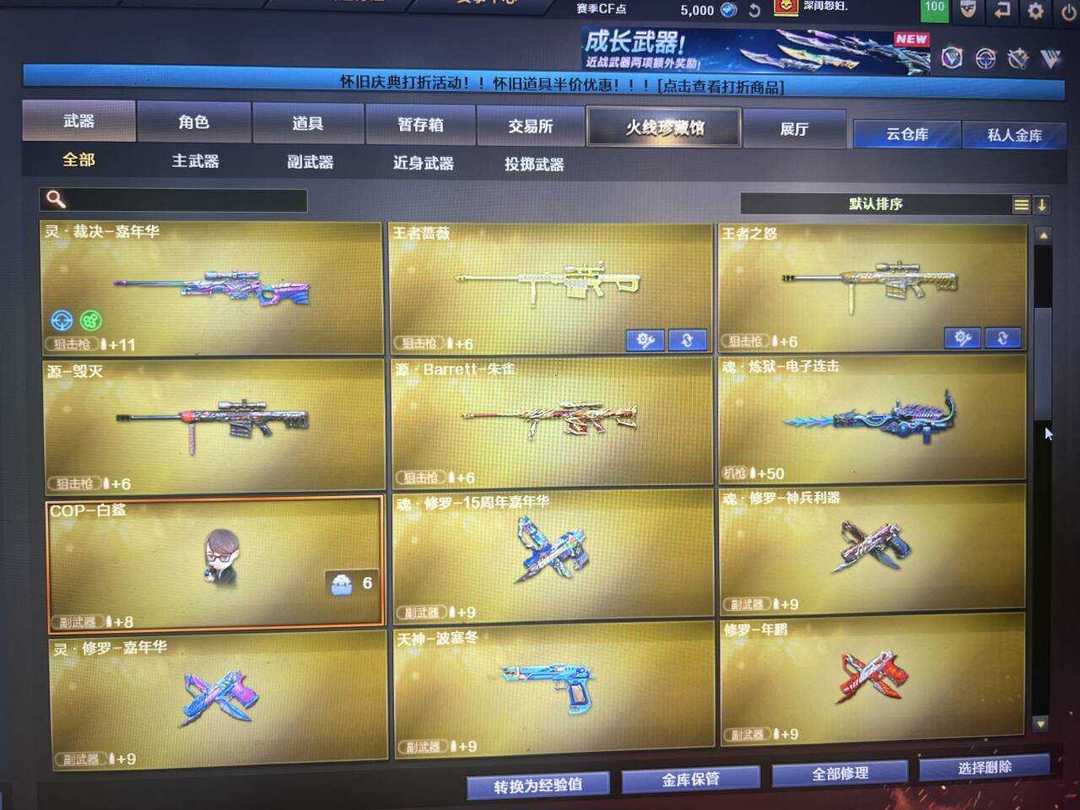 武器:白虎 朱雀 幻灵 幻影 金色蔷薇 幻神 毁灭 星神 王者霜心 王者蔷薇
