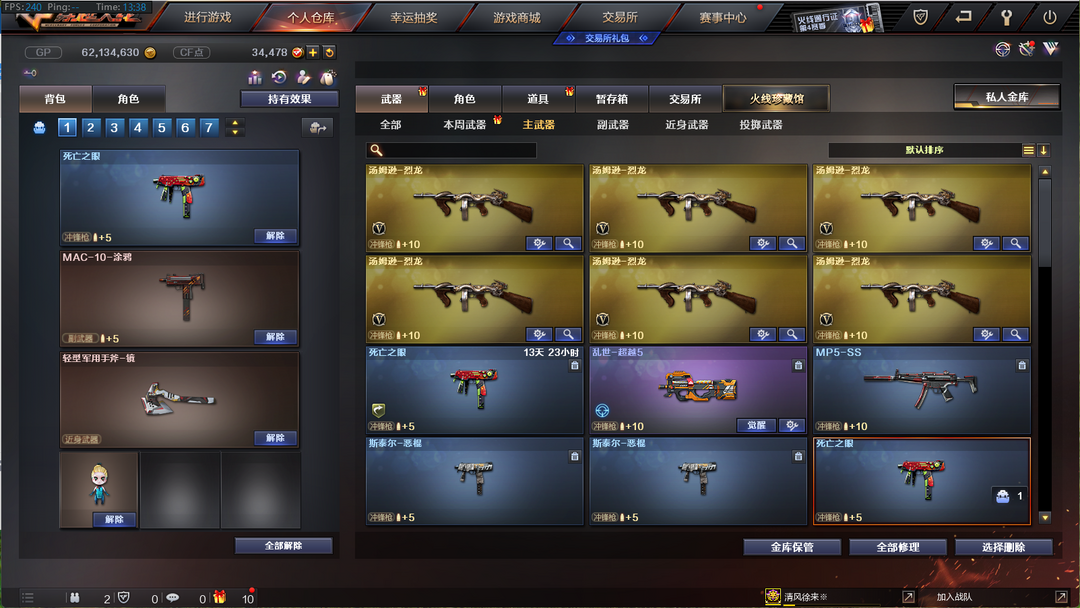 装备描述:欢迎收藏方便下次租用ぃ260V炼狱6盘6烈ぃ手斧镜生化减速雷ぃ7手枪8近身生化爆破号