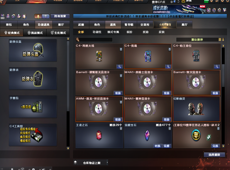 限制: 租号1次及以上 | 撤单率<45%才可租用此帐号装备描述:水下丽影 QBZ 极光 6盘6烈毒刺6修罗手斧镜减速雷 星空皮毁灭2018cfs+音效 雷神音效 5音效 看血免换弹