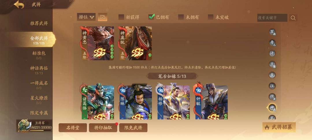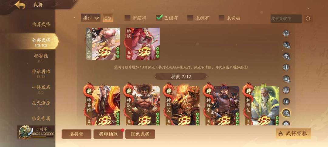 416将 神-张飞,黄忠,庞统,威-张辽,吕布,马超,乐-蔡文姬,周瑜,祢衡,貂蝉,诸葛果,。