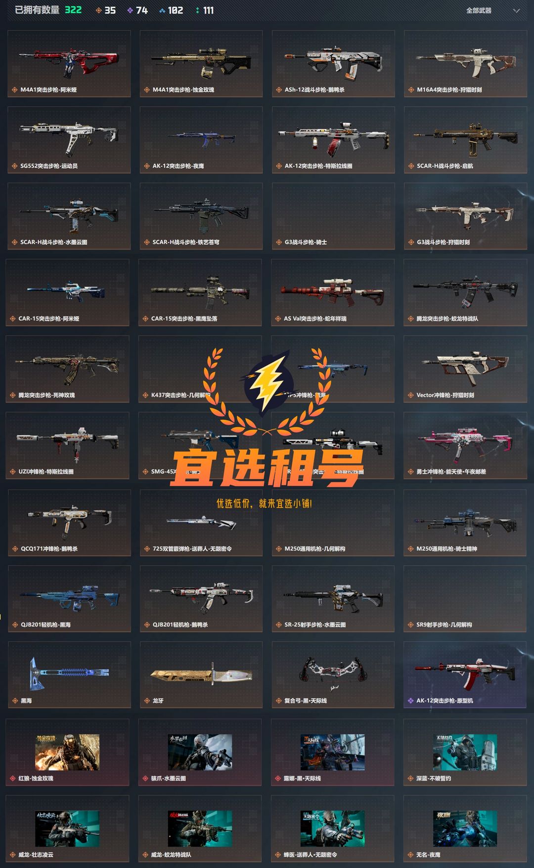 皮肤号 无币皮肤号⚡3红噬金水墨天际线2刀龙牙黑海全套42金⚡体6负6⚡大战场多载具⚡通行证已开⚡宜选租号