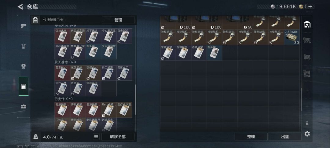 装备描述:仓库中的五套六套不能动,(包括扩展箱),其他的满改枪和装备可以用