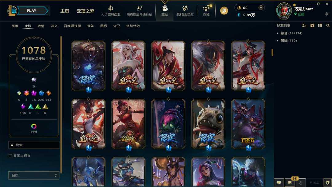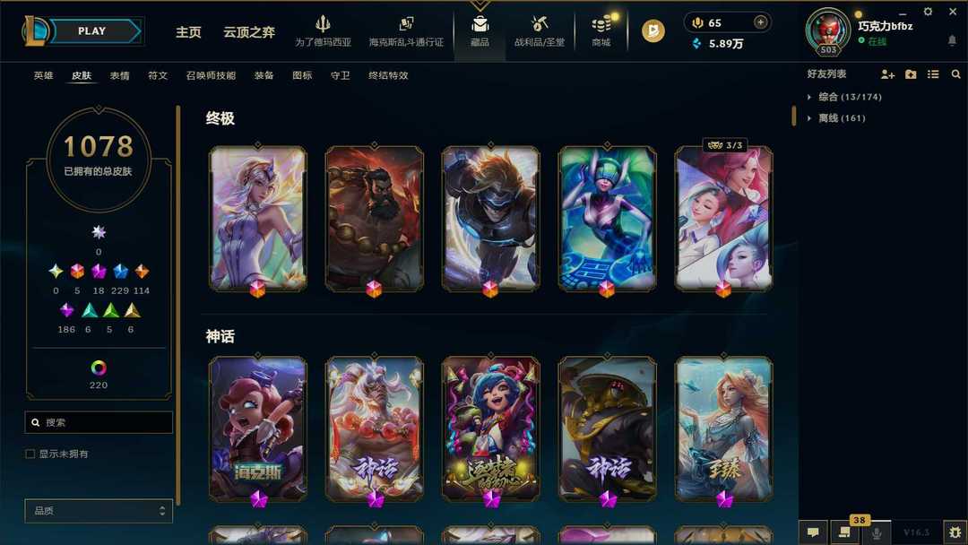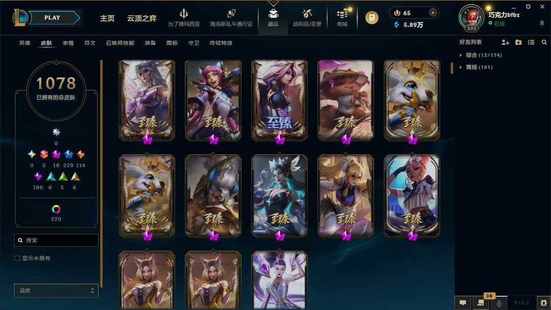 【泡泡】1300皮肤♥1078原皮♥圣天龙李青♥5终极♥18神话♥229限定♥220炫彩♥186史诗