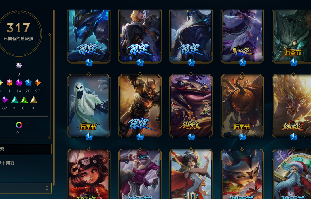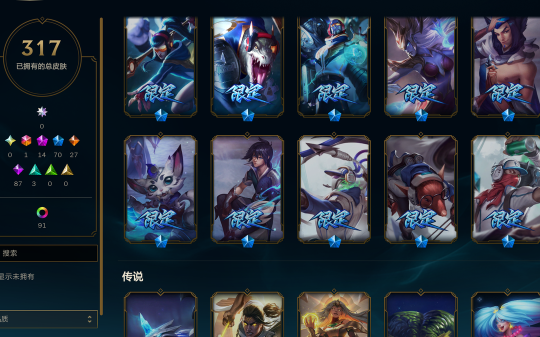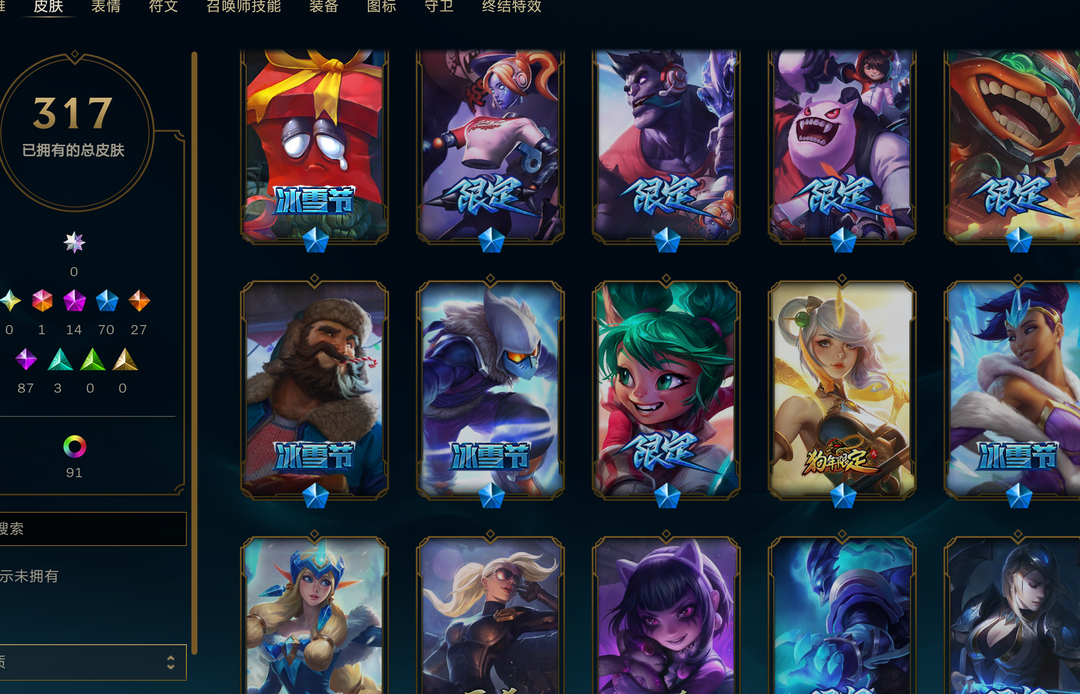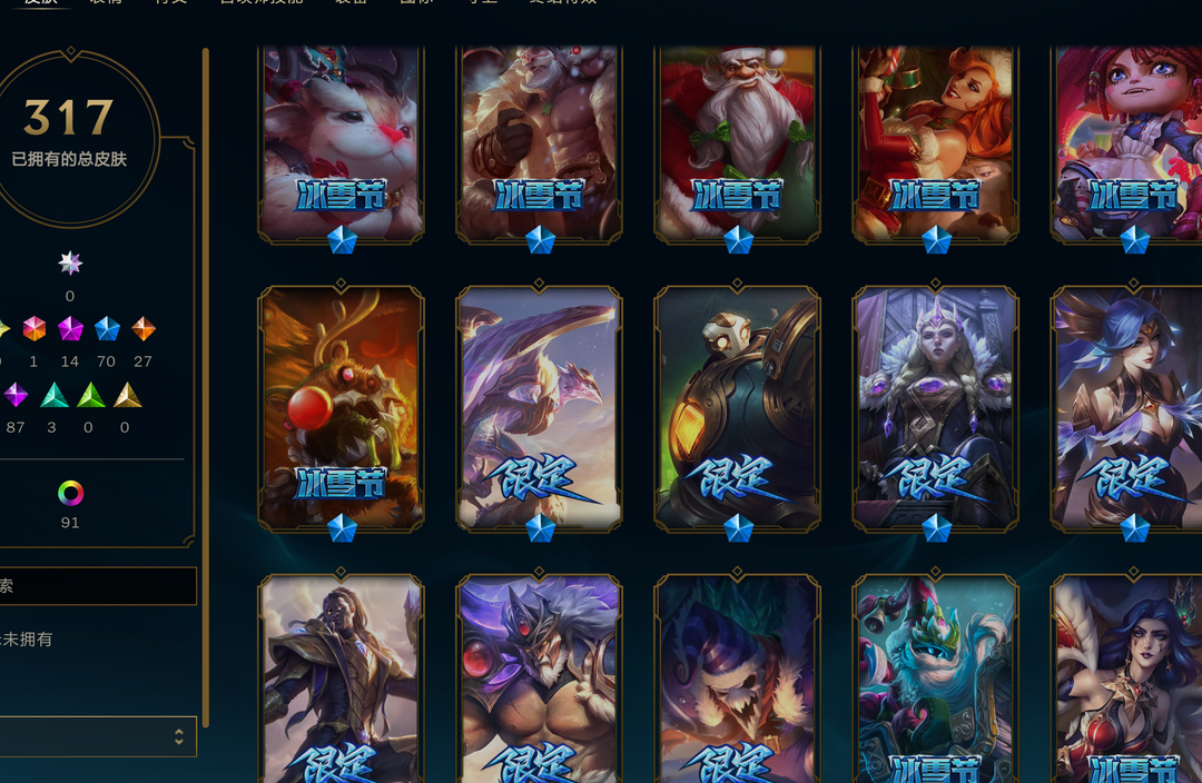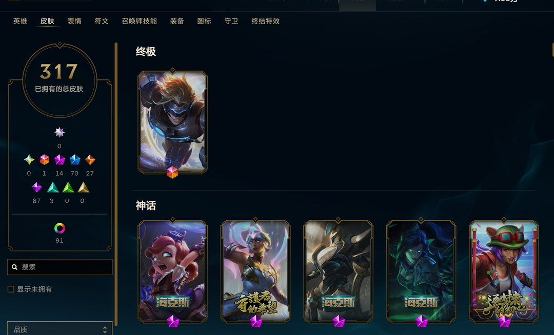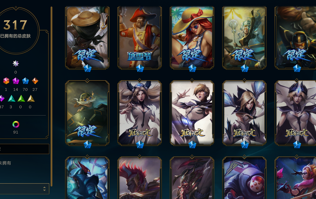 【艾欧尼亚】全英雄+317皮=可排位=未来ez+14神话+70限定