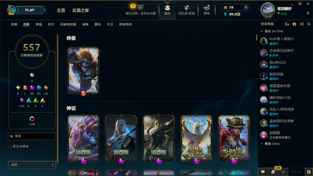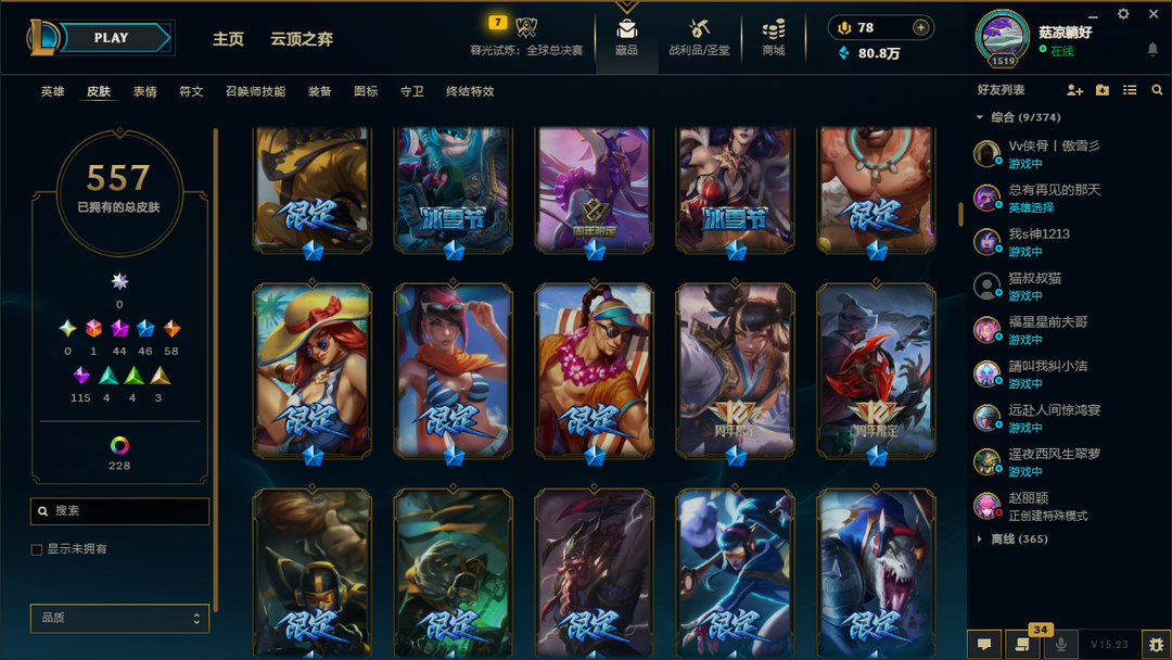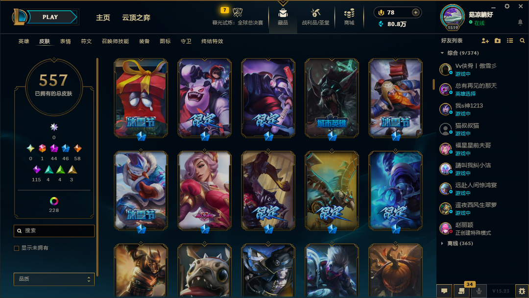 精品土豪皮肤557✅至臻34✅穿心之剑菲奥娜冠军典狱长锤石灵能特工易钢铁之翼艾维尼亚天龙之子斯莫德