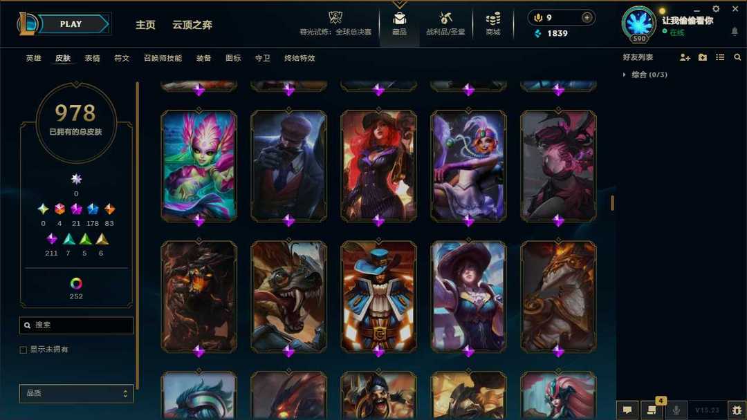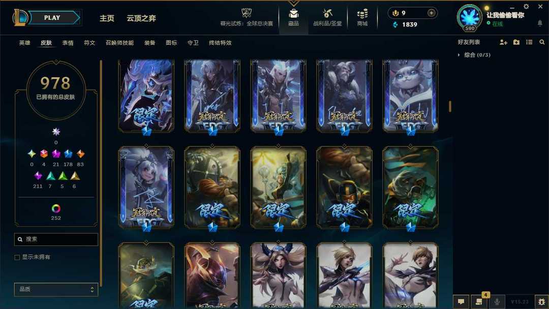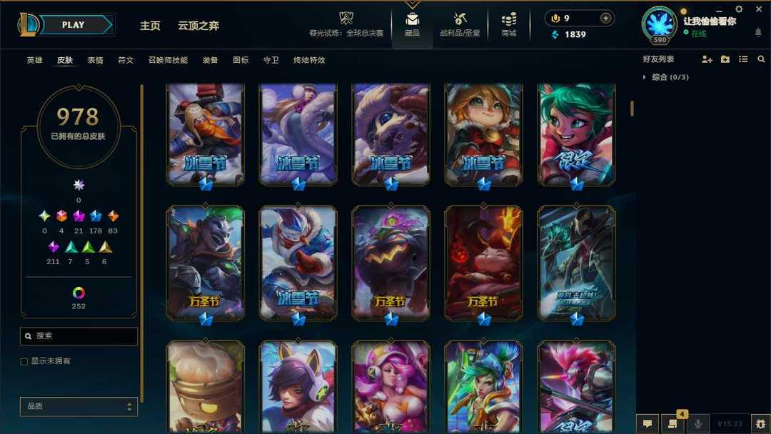 【泡泡】1200皮肤♥1000原皮♥252炫彩♥4终极♥23臻彩♥21神话♥178限定♥211传说♥