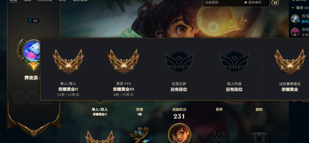 装备描述:单双黄金2灵活黄金3可排位乱斗匹配低分负胜率elo拉分虐菜炸鱼陪玩专用号,可搜ID查询战绩段位