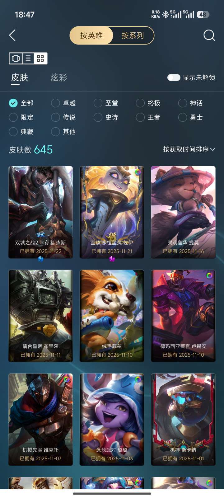 装备描述:645个皮肤全英雄 龙虾+龙刀 请游戏局内保持文明,防止禁言影响他人游戏,祝您玩得愉快!