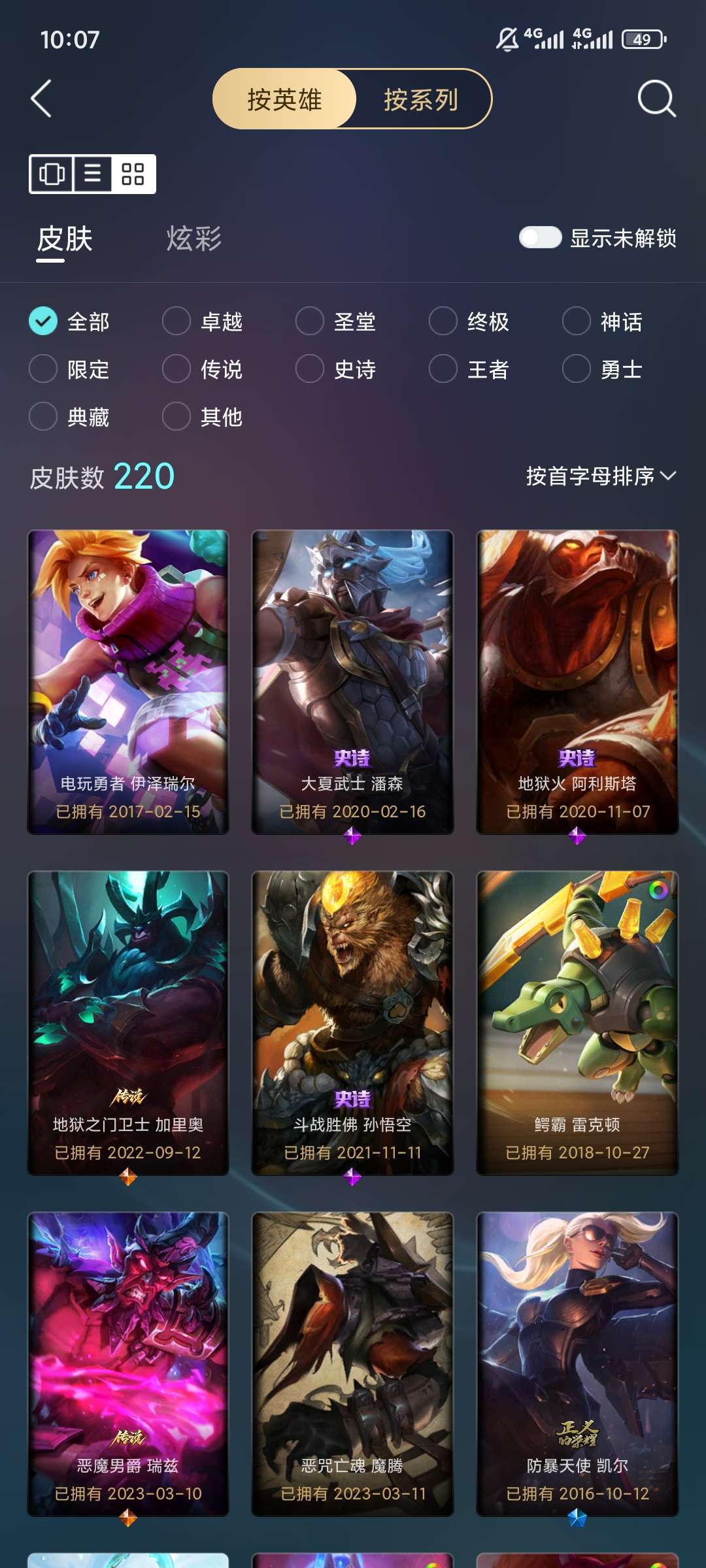 稀有皮肤 英雄多 请游戏局内保持文明 祝您玩得愉快