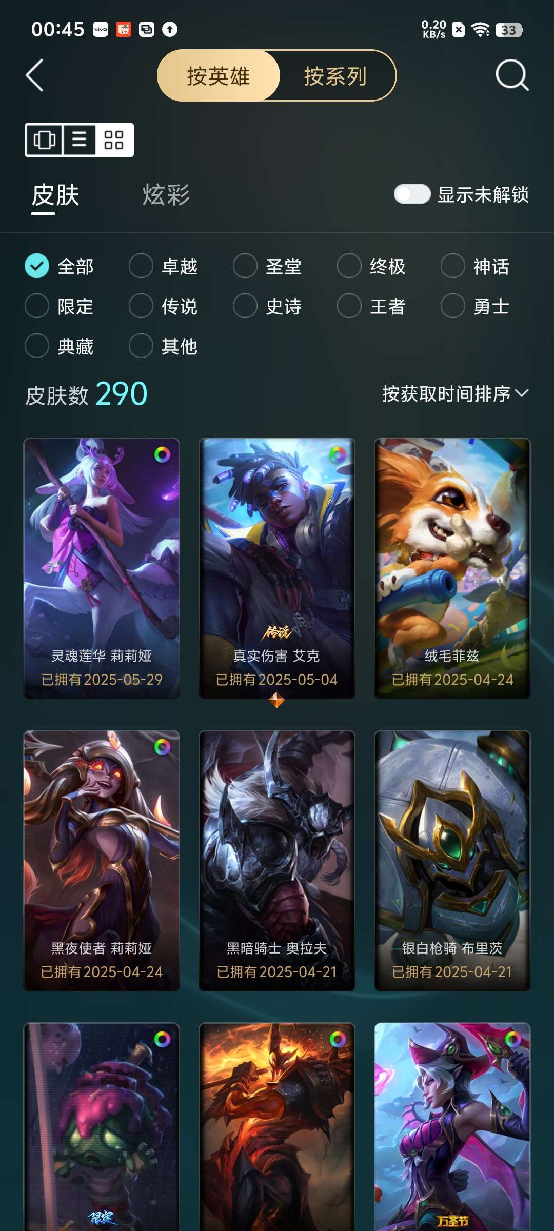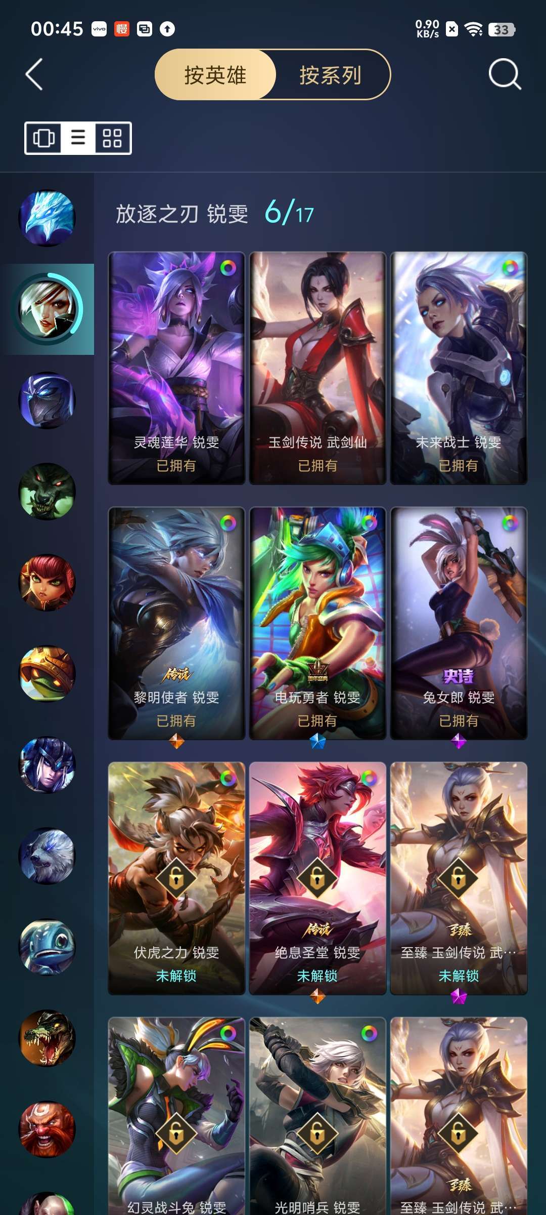 皮肤数290,海克斯鳄鱼,玉剑传说,黎明使者,电玩勇者瑞文,