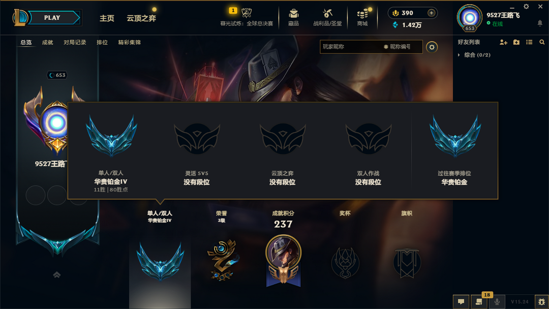 段位:664级 当前赛季无