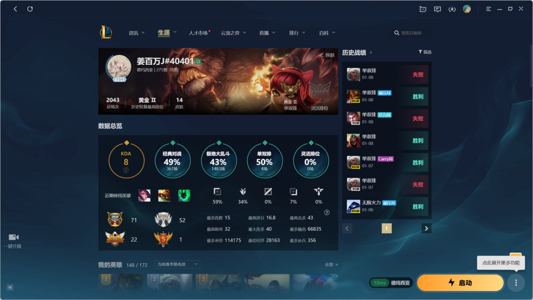 游戏区服:英雄联盟-联盟五区-德玛西亚