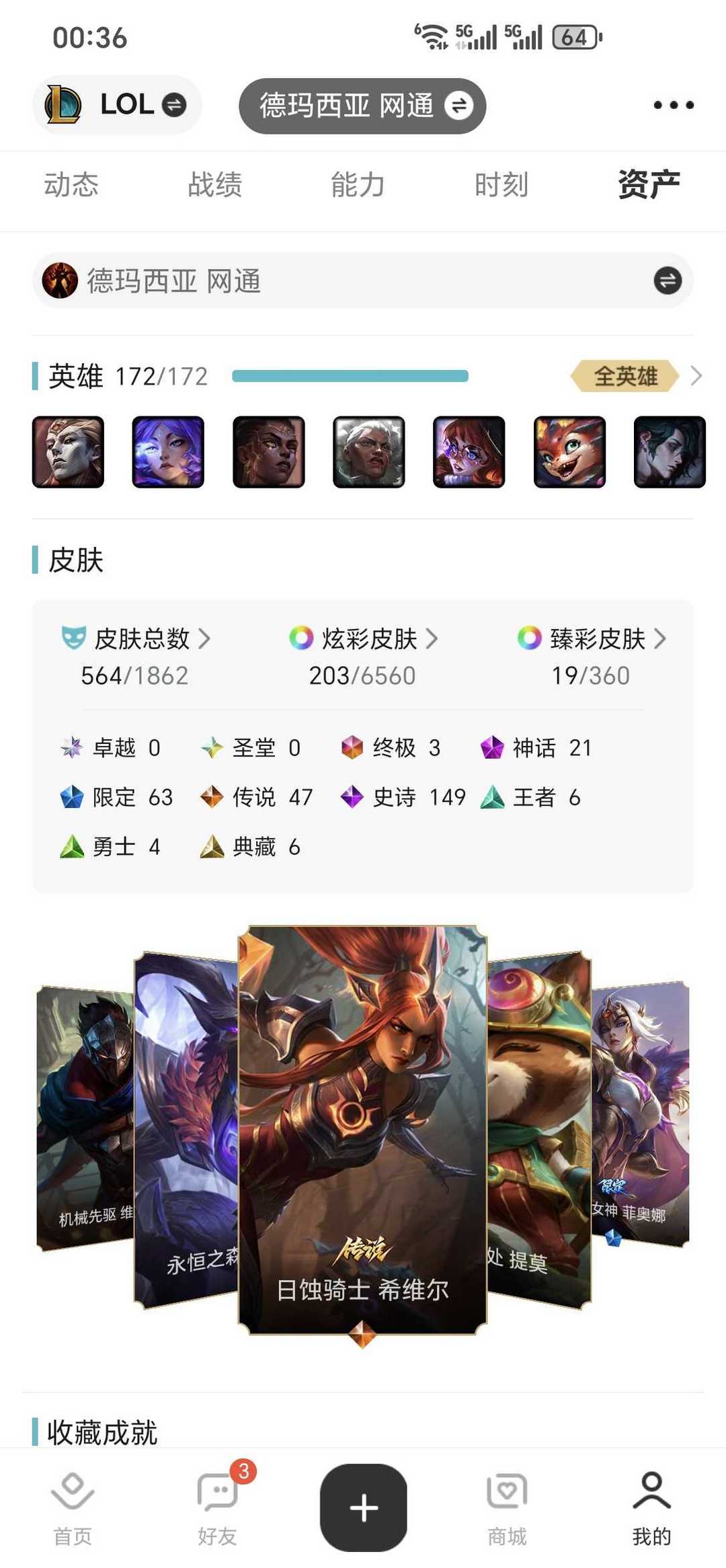 装备描述:519皮肤,全英雄,43守卫,1000成就,4500里程,各种稀有皮肤