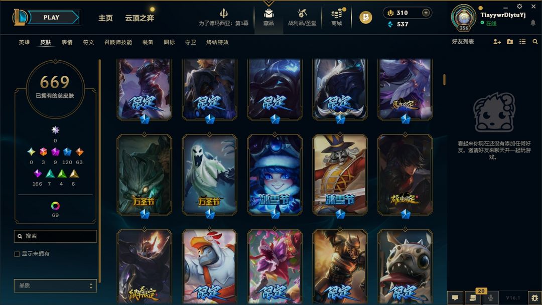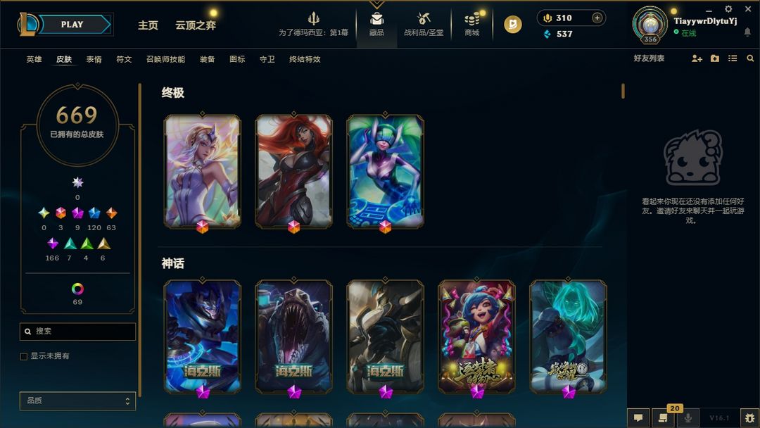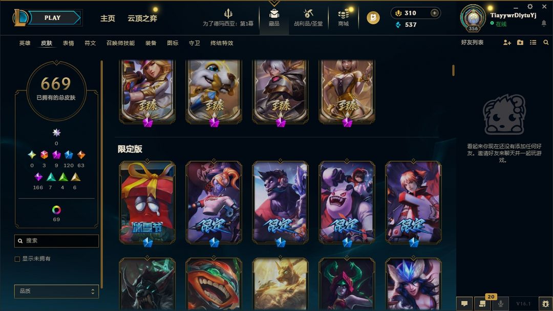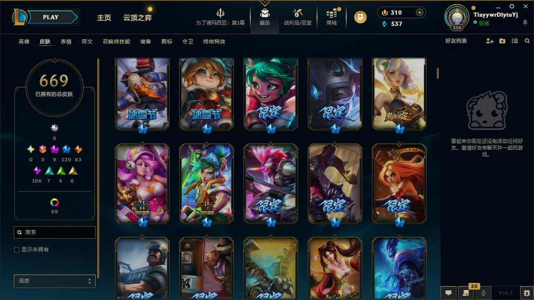 171英雄,4甄彩,98炫彩,669皮肤稀有限定皮肤很多