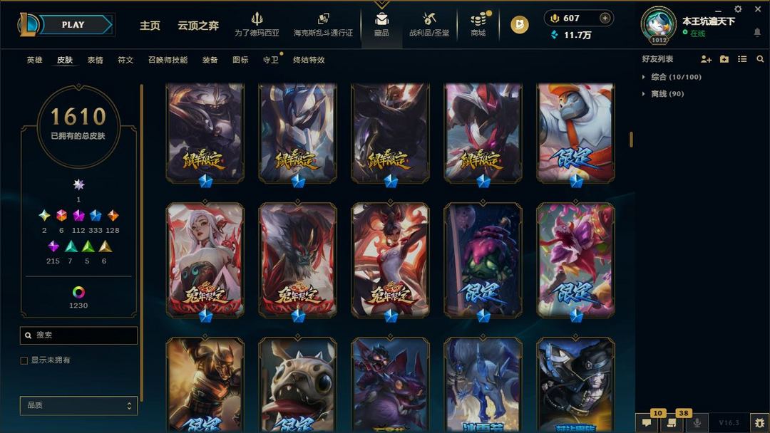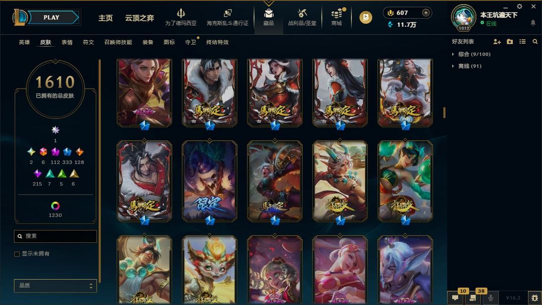 【LOL大王】2900P乄1610原皮乄1230炫彩乄圣堂佛耶戈金克丝乄神话幻想劫烬艾克阿狸诺手永恩