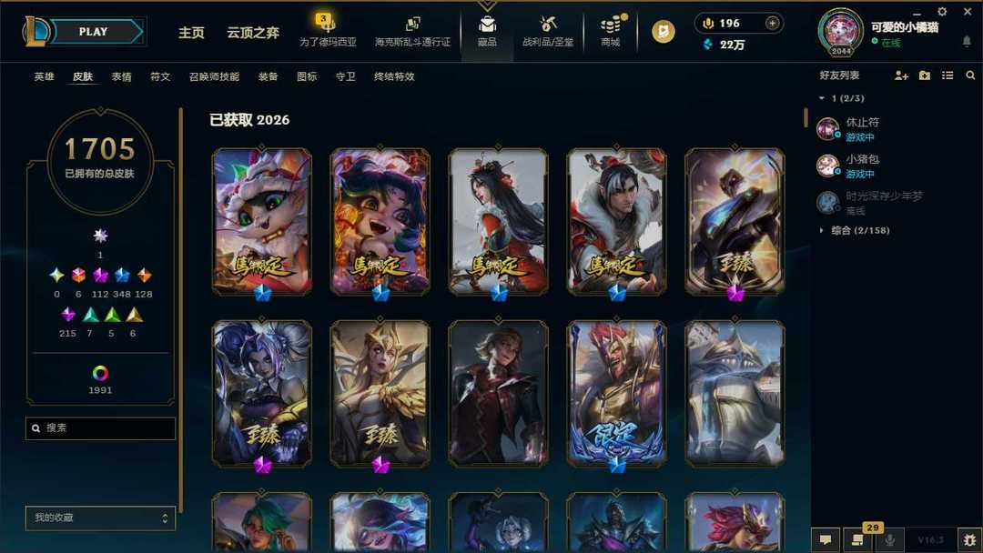 █允许排位█3734皮█艾欧尼亚█93臻彩█极品下棋号█踏雪寻梅█马年限定█龙虾琴刀█手办猫猫头像