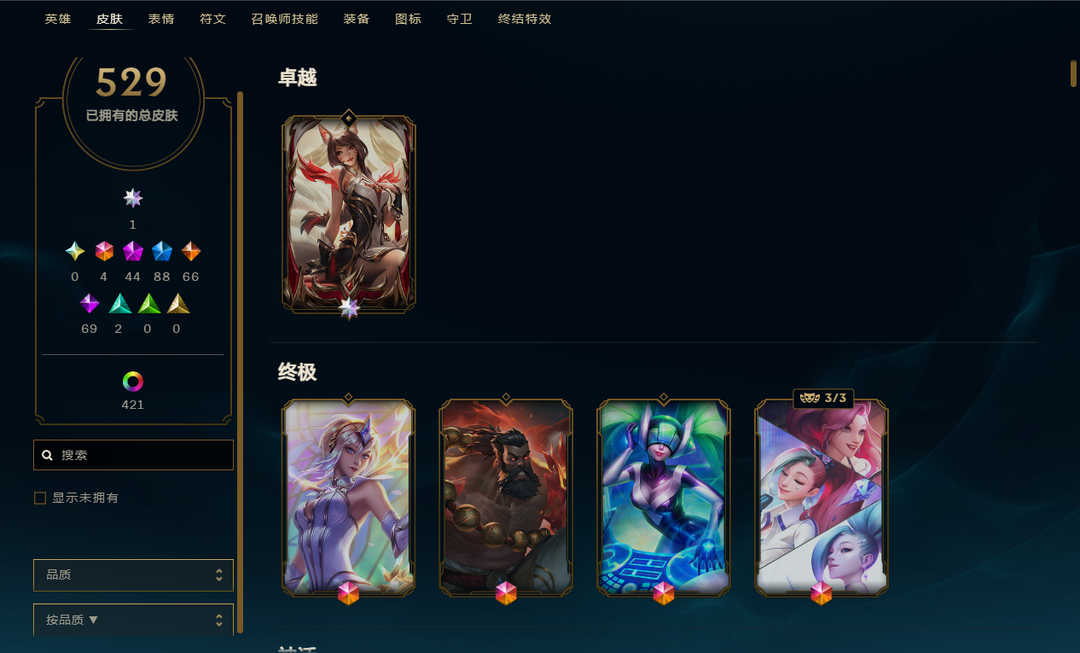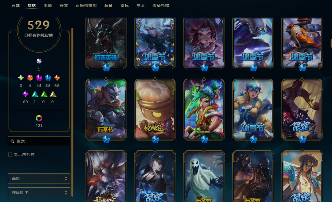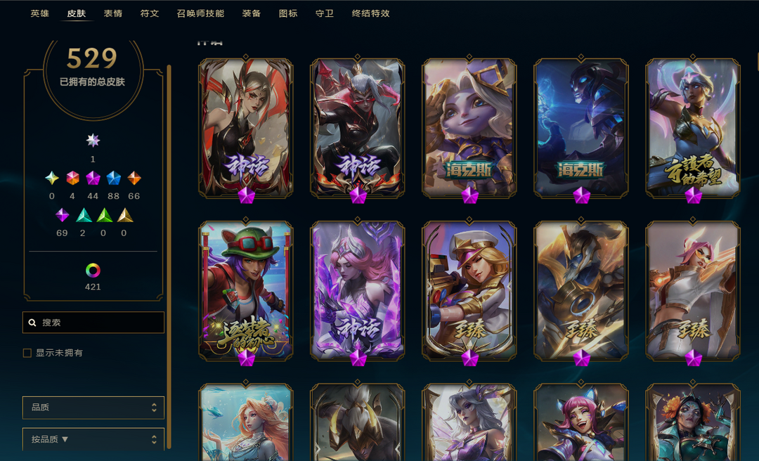 【联盟四区】妹子号★950真实皮★529英雄皮★421炫彩★殿堂阿狸妖姬VN★金克斯终结特效★可排位