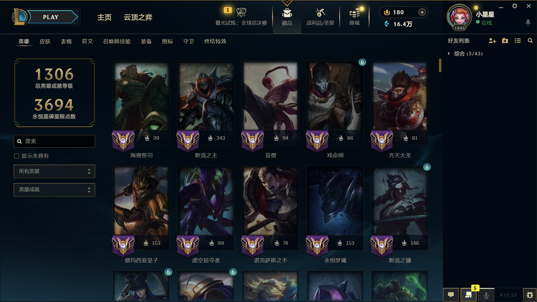 全英雄/15个至臻/摄魂VN/300个限定600个皮肤