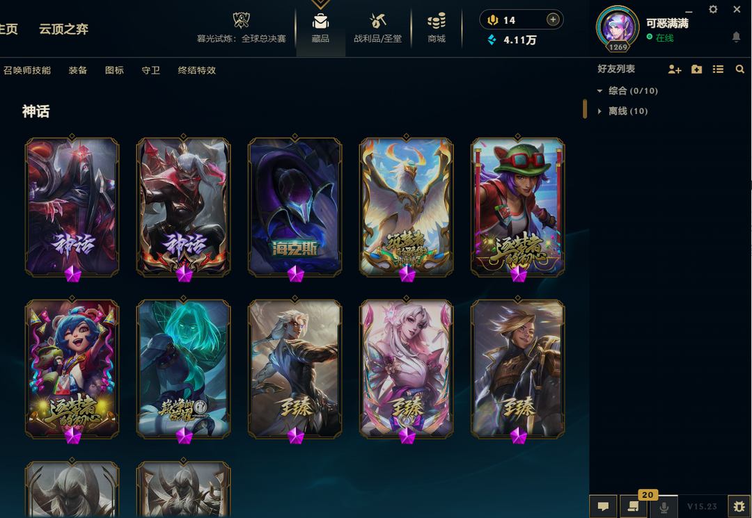 800皮肤〓20神话〓神龙臻彩冠军签名皮〓殿堂传奇灵活莲华超炫传说皮