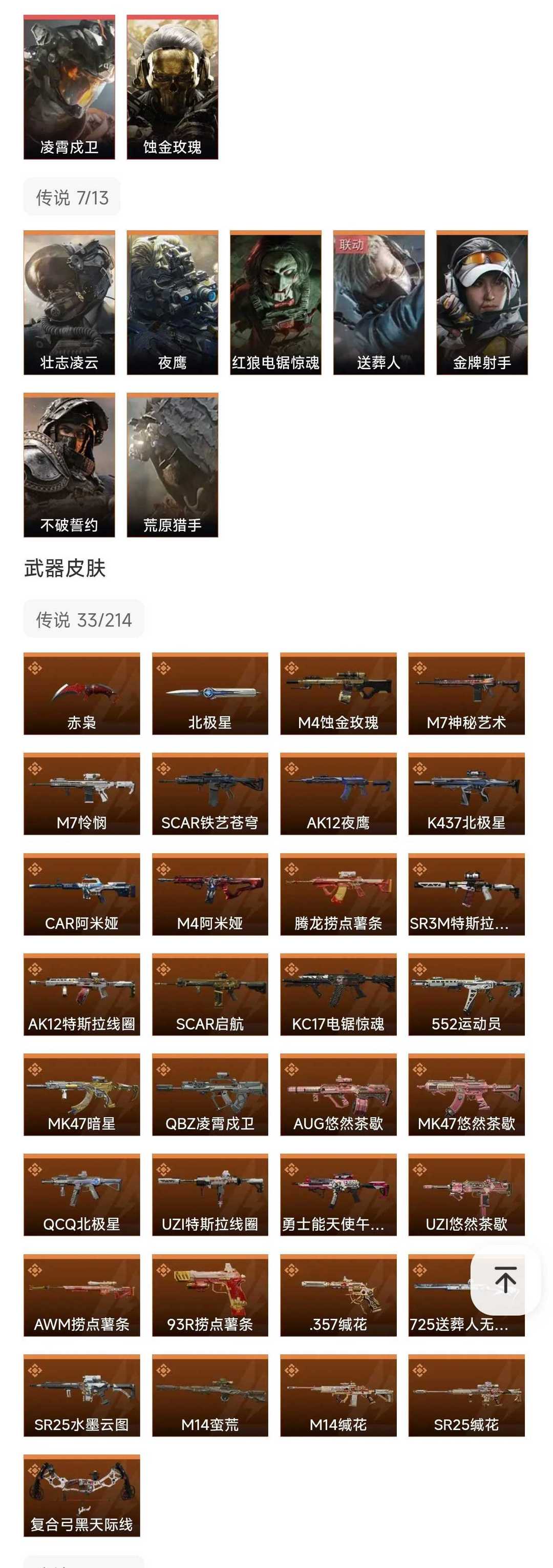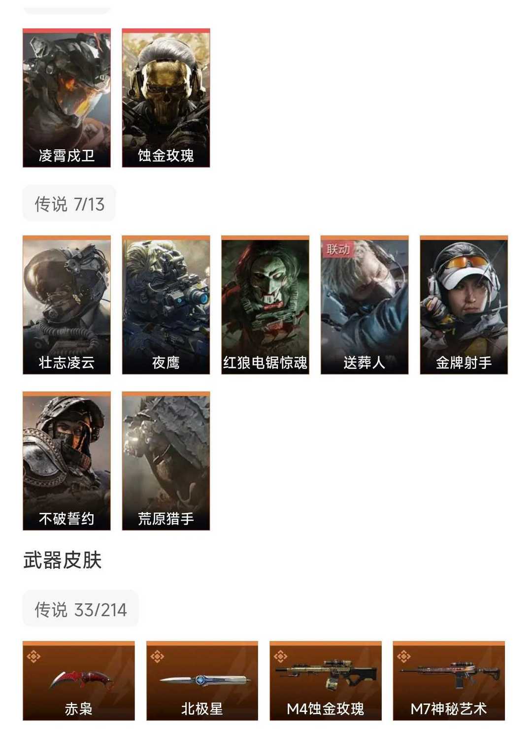 皮肤号 赤枭北极星凌霄茂卫,蚀金玫瑰,9干员,33款传说枪皮
