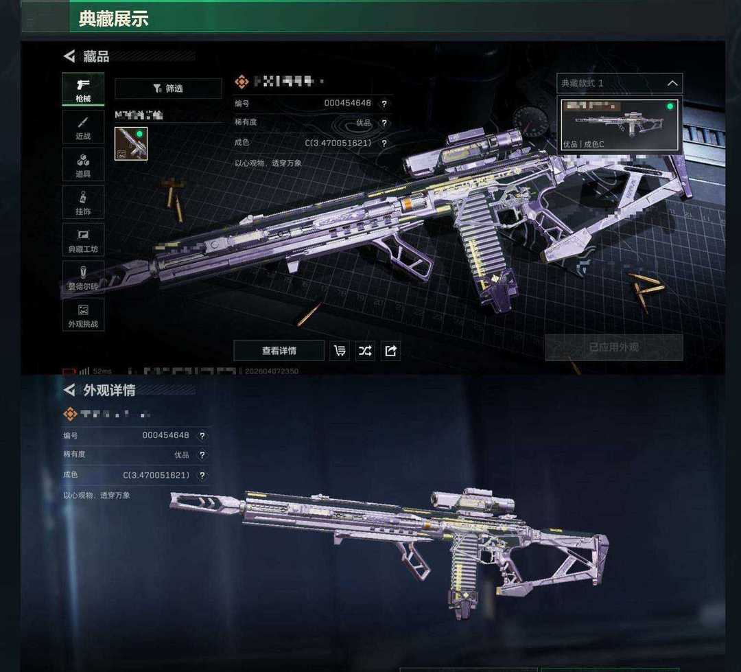 装备描述:棱镜s2暗星信条,凌霄茂卫,蚀金玫瑰,40款传说枪皮