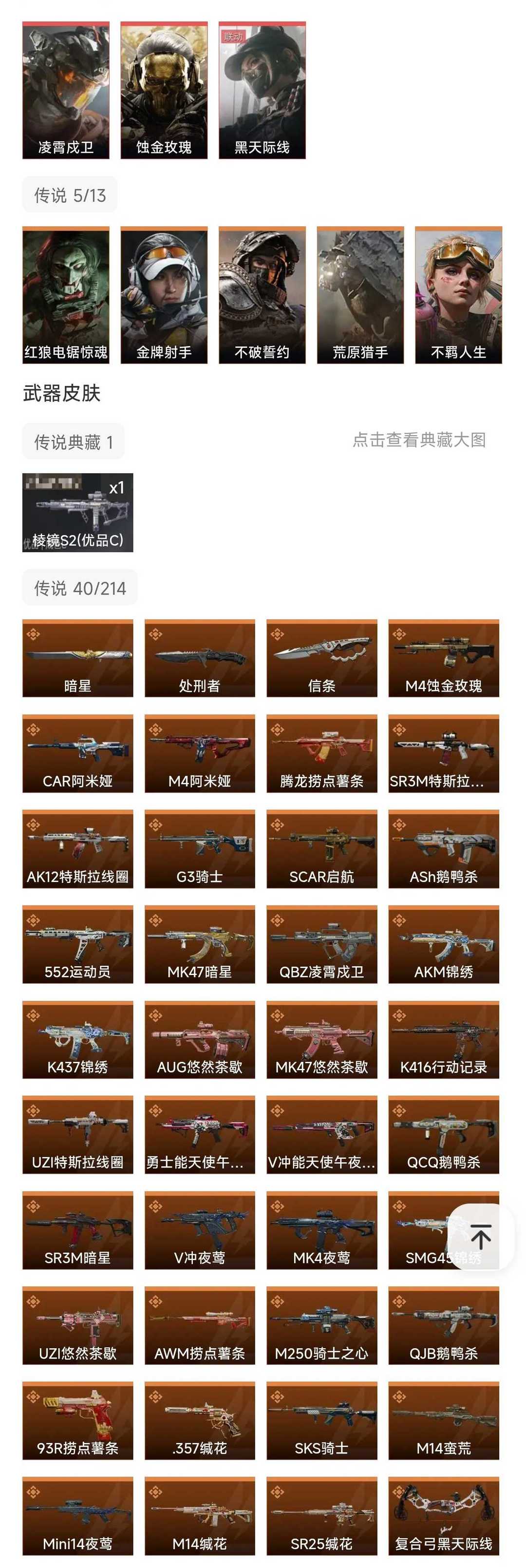 皮肤号 棱镜s2暗星信条,凌霄茂卫,蚀金玫瑰,40款传说枪皮