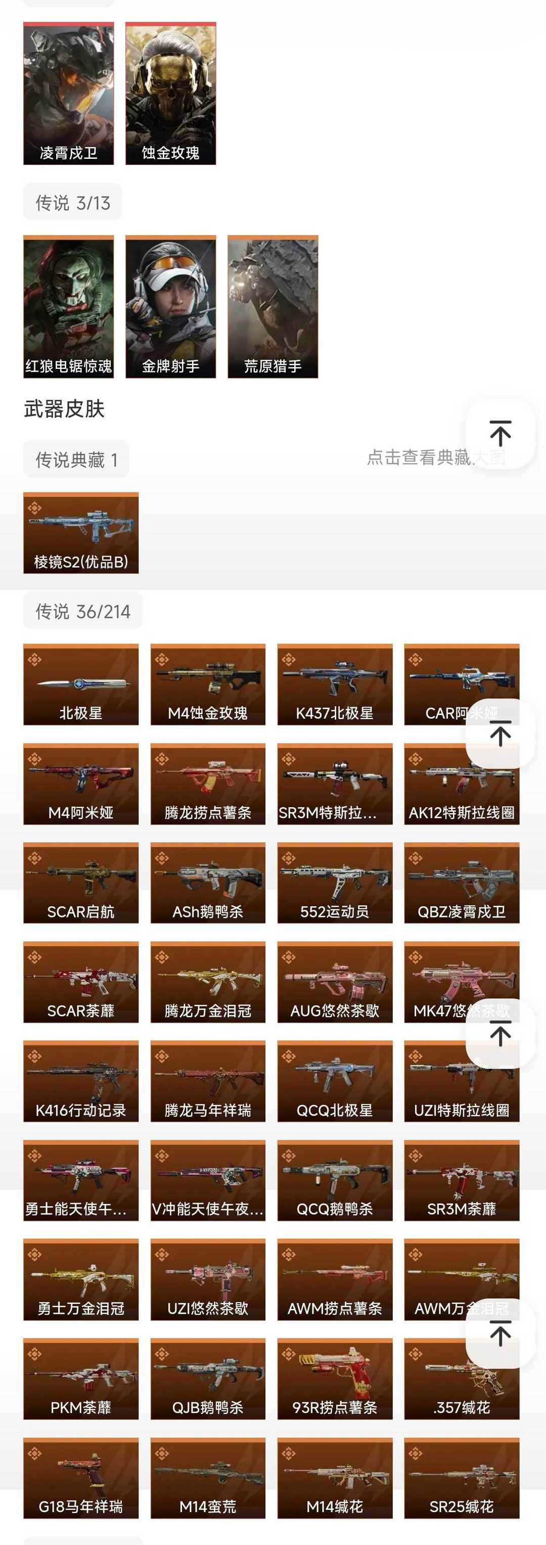 皮肤号 棱镜s2典藏北极星凌霄茂卫,蚀金玫瑰,36款传说枪皮