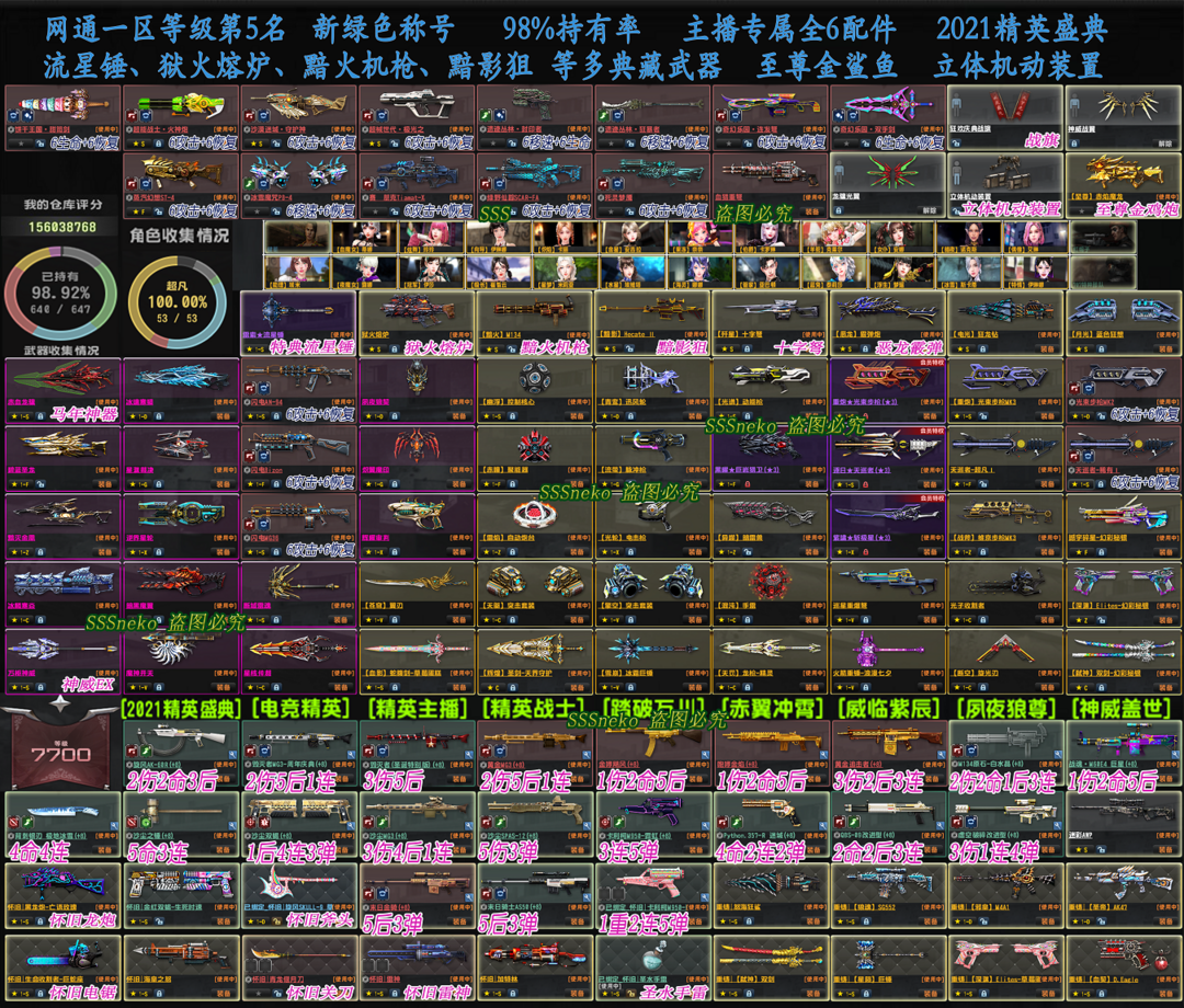 限制: 租号5次及以上 |装备描述:【有建议请您⑤星好评+留言,谢谢】 ★新浅绿色称号3500荣誉,98%武器持有[2021精英盛典][精英主播][电竞精英],网通一区等级第5名7900级,皇家紫钻!主播号! ★绝版装饰:战旗、立体机动装置! ★特典武器:典藏流星锤(雷索流星锤)+黯火机枪+黯影狙+狱火熔炉+歼星十字弩等多特典武器!!! ★全部武器全6攻6恢复配件,请您去仓库里自行切换! ★怀旧关刀(怀旧青龙偃月刀)+怀旧黑龙炮亡语玫瑰! ★闪电AN94、闪电野牛、闪电MG3机枪、光束步枪123,天巡者超凡1,全部拥有,轻松上分。 【玩过别忘收藏!!!用心打造极品账号,给您最棒的游戏体验!】
