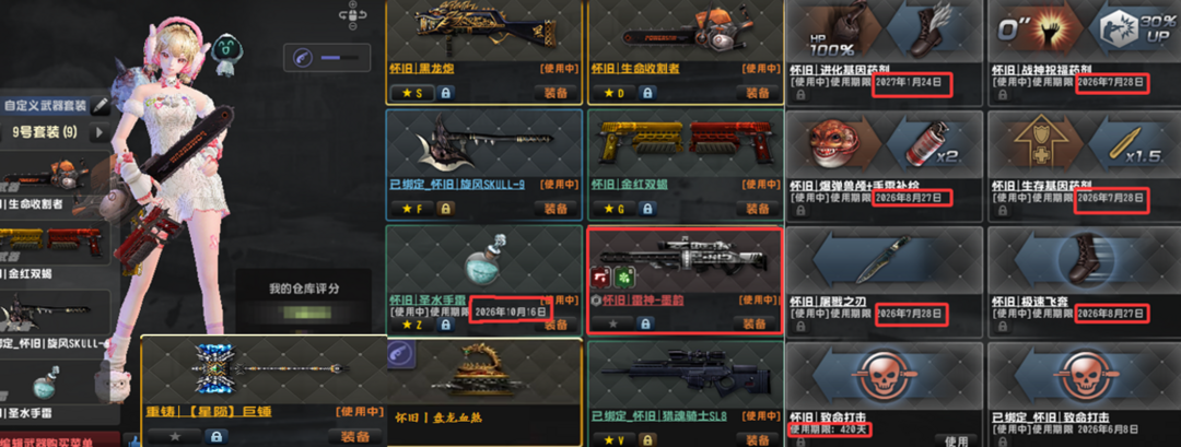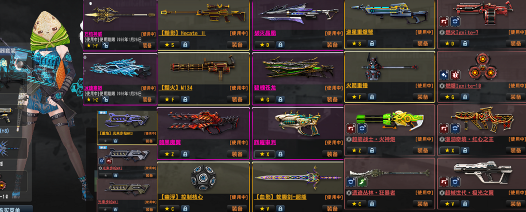 凛●双黯特典狙加特林黯火黯影●冰璃寒蟒万钧神威●重铸怀旧雷神盘龙炮电锯金红斧●光束套暗影暗火禁区99