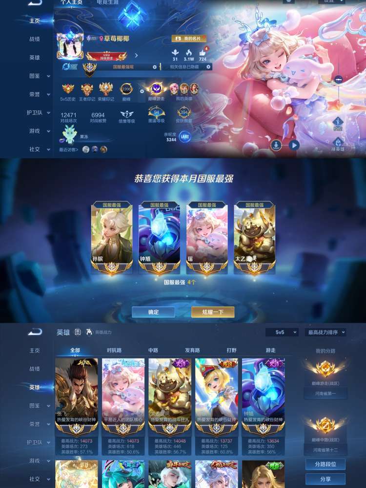 3月在榜四大国服瑶|大国服太乙|大国服孙膑|大国服钟馗❤️游走巅峰万强❤️可排禁巅峰❤️女神漂亮号