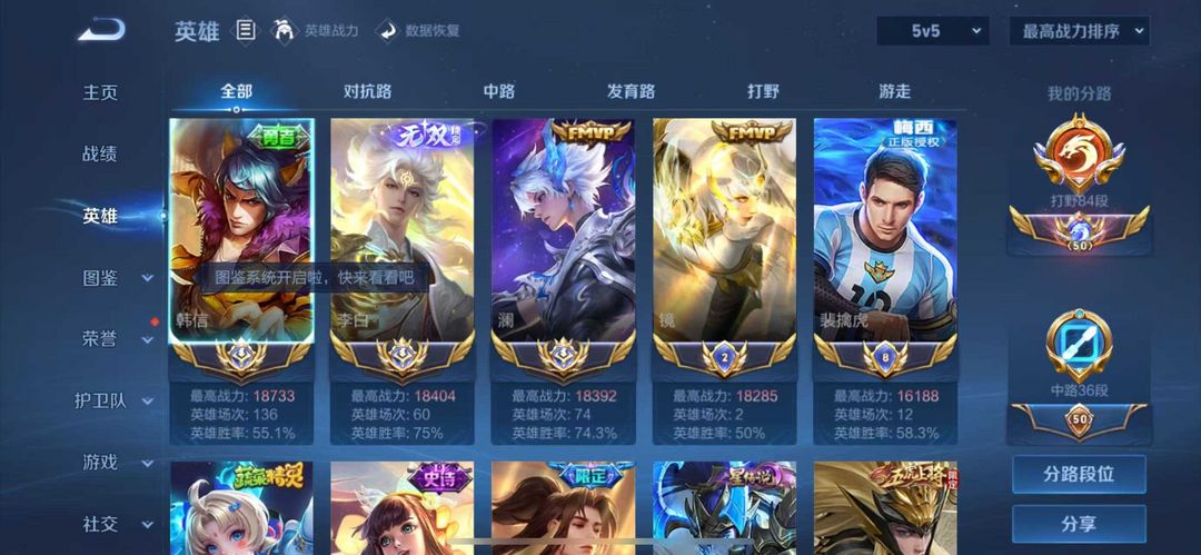 1月正式服在榜三国标李白韩信澜⭐84段打野超多省级限定⭐可排禁巅峰