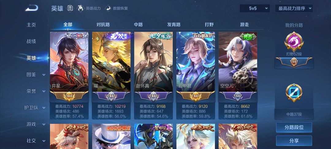 v10❤李白貂蝉典藏❤李信,孙悟空,凯,李白,曜,甄姬无双❤打野52段84⭐❤超多年限❤全能高手