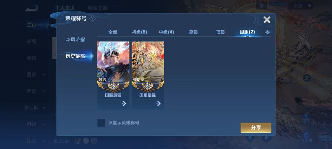 正式服历史2w1国服韩信⭐1.8w国服孙悟空⭐荣耀典藏限定⭐无双皮肤限定⭐超多省级限定⭐可排位