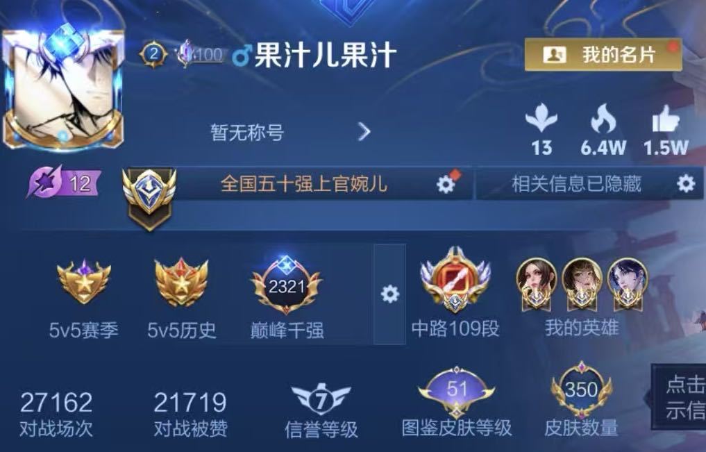 巅峰千强300名框⭐12月正式服在榜三小国标上官婉儿海诺火舞⭐109段十国服中路⭐可排位禁止巅峰