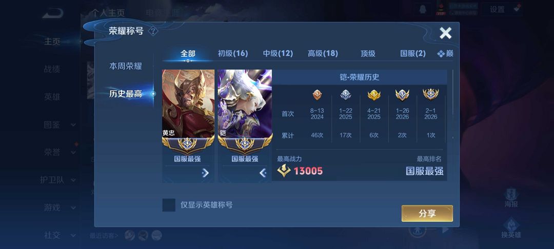 巅峰2100✨3月在榜国50凯✨历史双国服✨高胜率高评✨挂机扣分打巅峰必拉黑!人品好租客来